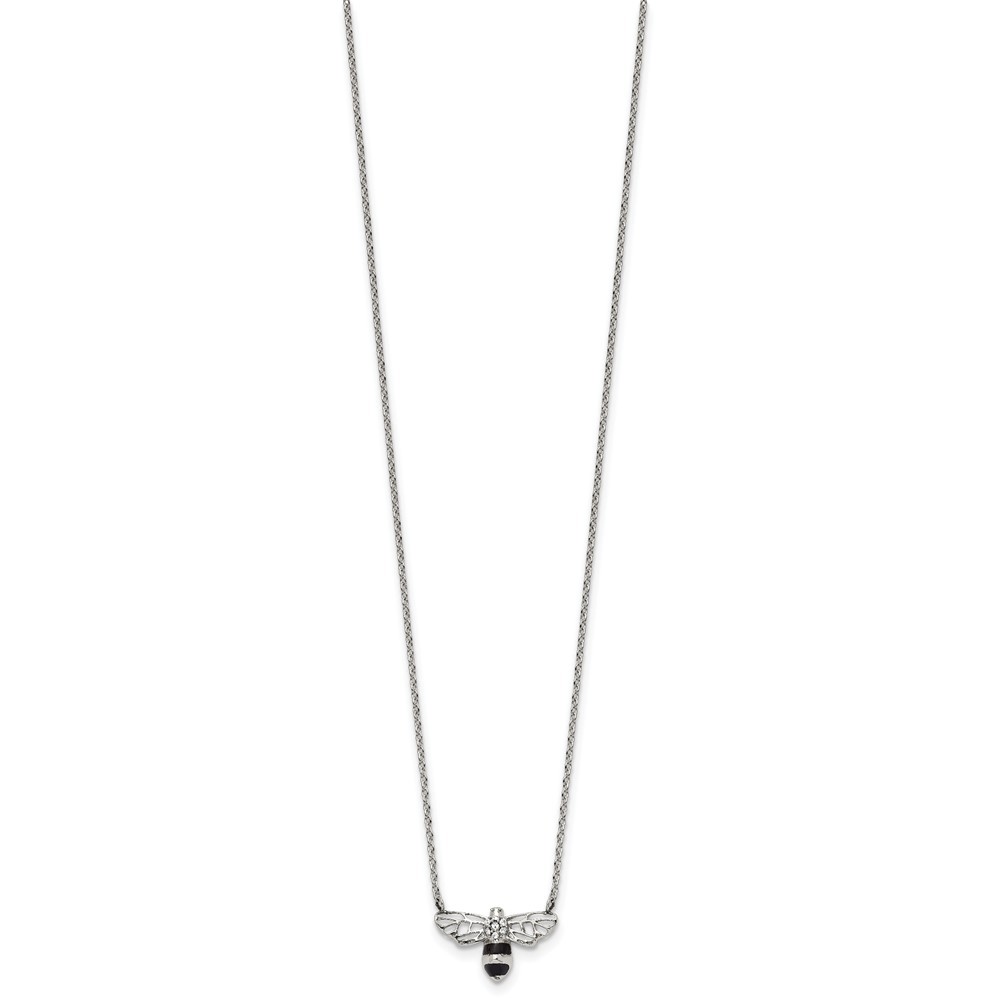 Finish:Polished|Stone Type_1:Crystal|Stone Color_1:White|Stone Quantity_1:8|Length of Item:18 in|Material: Accents:Enamel|Material: Accent Color 1:Black|Chain Length:18 in|Chain Type:Cable|Chain Width:1 mm|Charm/Element Length:10 mm|Charm/Element Width:15 mm|Clasp /Connector:Lobster (Fancy)|Extender Length:1.75 in|Material: Primary:Stainless Steel|Item Weight U/M:gm|Width of Item:1 mm|Packaging:Gift Boxed|Product Type:Jewelry|Jewelry Type:Necklaces|Sold By Unit:Each|Necklace Type:Themed Necklace|Pendant/Charm Type:Themed|Gender:Women's|Material: Primary - Color:White|Number of Elements:1|Stone Creation Method_1:Synthetic All weights and measurements are approximate and may vary slightly from the listed information. Welcome to diamond_6720 Payments We accept all Ebay approved payment. Please sent the payment to us within 8 days after the auction has ended, or you will have unpaid case auto open by eBay. Shipping Policy We will ship all items within 1 business days of purchase during the work week (M-F) excluding holidays. If you order on Friday, your order will be shipped the following business day. Tracking will be provided when it becomes available. We will only ship to a PayPal Verified Address. Please make sure your address is current and correct. If the information does not match, your order may be canceled. Buyers are responsible for all customs, duties and taxes for your respective countries. Delivery times for International Shipping will vary. California Buyers Pay 9.0% Tax on all orders. case auto open by eBay. Return Policy & Exchange Returns or Exchange are accepted. Buyer must contact us within 30 days after the item is received. Item must be returned in unworn and resalable condition. We will only issue a refund for the purchase price, excluding any shipping fees. If we are at fault, we will provide a full refund. Buyer is responsible for all return shipping costs. BUYERS FEEDBACK If you have any concerns regarding your purchase, please contact us via eBay Message, we assure you that a satisfactory resolution will be reached. Your feedback is very important to us Do remember to give us 5 star rating(*****) if you are satisfied with our product & service .