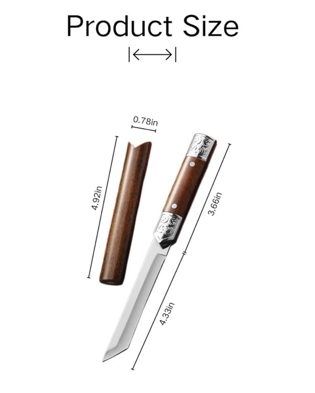 Blade Material Stainless Steel Color A Handle Material Plastic Blade Edge Plain Blade Length 4.33 Inches This fruit knife is very sharp and can easily cut and peel fruits The handle design conforms to ergonomics, providing comfortable grip and sliding. Ensure reliability during use and provide you with a user experience Easy to carry, this knife is compact and lightweight, perfect for carrying in a side pocket or backpack without taking up space Unique exterior design, perfect for personal use, collection, or gifting This knife comes with cover, suitable for camping, hiking, picnicking, etc