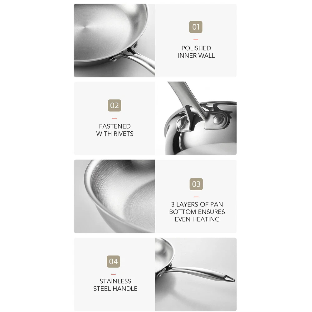 Feature: 1. Stainless Steel: This frying pan is made of stainless steel material, which ensures high hardness and long service life. 2. Sturdy Construction: This stainless steel frying pan is fastened with rivets, long service life is guaranteed. 3. 3 layers: This stainless steel skillet features 3 layers bottom, so it heats quickly and evenly, professional heat distribution. 4. Ergonomic Handle: This stainless steel frying pan adopts handle in ergonomic design, providing comfortable grip and control. 5. Wide Application: This non stick skillet pan is perfect for searing, making scrambled eggs, saute vegetables, curries and more. Specification: Item Type: Stainless Steel Frying Pan Material: 304 Stainless Steel Color: Silver Package List: 1 x Stainless Steel Frying Pan All the items will be dispatched within one business day by Airmail after the payment is clear. Most times you will receive your order within 10-30 business days after we transfer your package to the delivery company. We cannot guarantee the delivery timeframe if the post office has any unexpected delays due to holiday,weather,customs, or other conditions. Some countries like Russia, Brazil, or some European countries may take up to 50 days or longer for delivery. We appreciate your patience if you haven't received items in 30 days(Russian customers may need more patience by reason of the local delivery system and/or customs). If you are concerned in any way, please feel free to contact us via ebay message instead of leaving negative/neutral feedback or opening a dispute . We will do our best to solve any problem(resend or refund any missingitem). Customs duty is obligation and liability of citizens in yourresponsible for any tax and custom duty incurred. Generally, thedelay or failure delivery is sometimes caused by the policy of different customs. Our listing price includes the value of goods,packaging cost,and export taxes,not including international duties. duties,taxes,and charges are not included in the item price or shipping fee. The duties are buyers' responsibility. Please check with your country's customs office determine what these additional costs will be prior to your purchase. All disputes arising from the duties will be submitted to ebay for solution. Any questions, pls. contact us via ebay message or email us. We will reply your message within 48 hours. If you do not receive our reply within 48 hours, pls. post a message again because sometimes our message system may block some emails. If you are satisfied with our service, pls. kindly leave us a positive feedback and give us the Detailed Seller Rating with all " 5 " in very area. Our aim is to provide Level Customer Service, your recognition will encourage us greatly and serve you better. We strive to keep all our customers satisfy. We will do our up most to exceed your expectations in customer service, communication and dispatching of your orders.