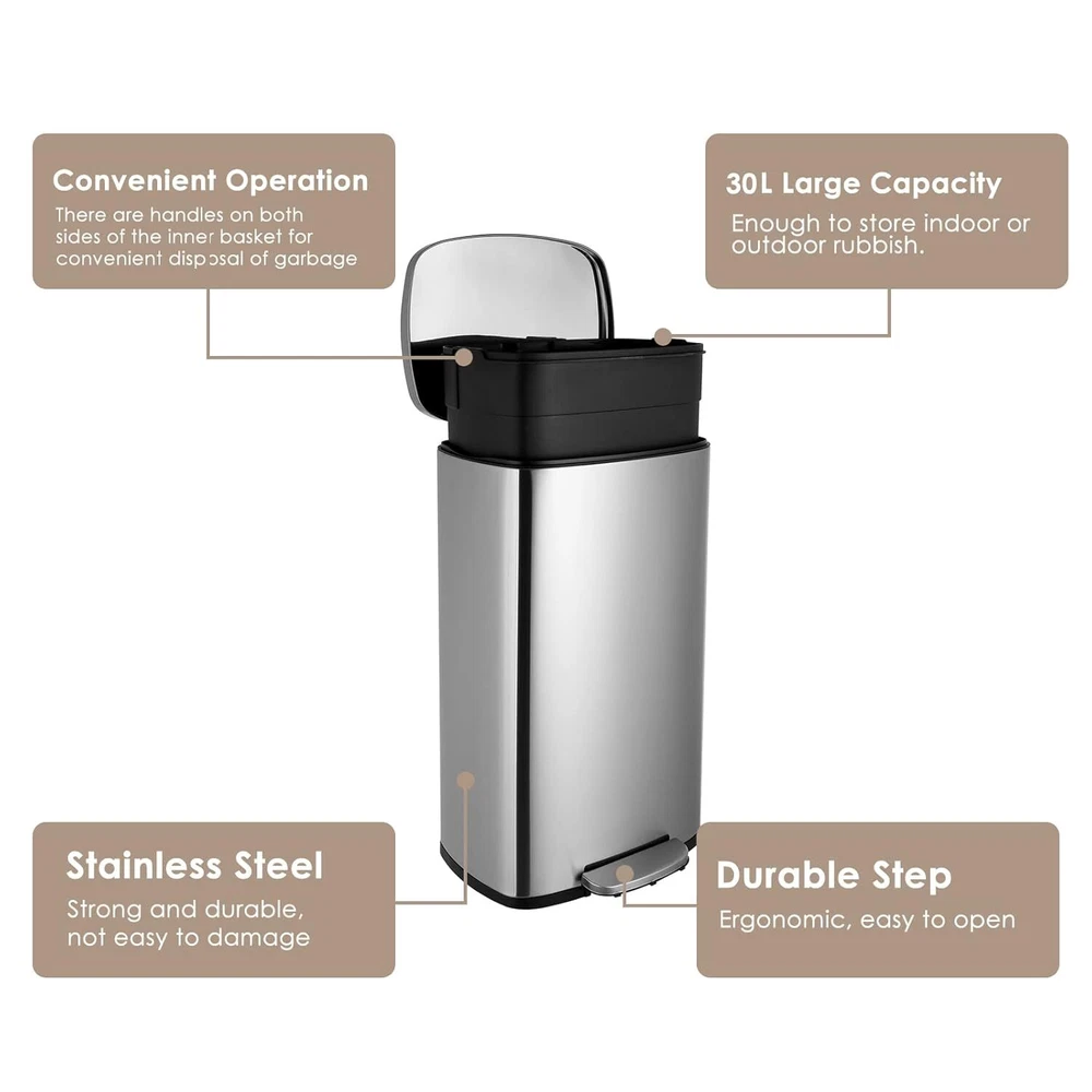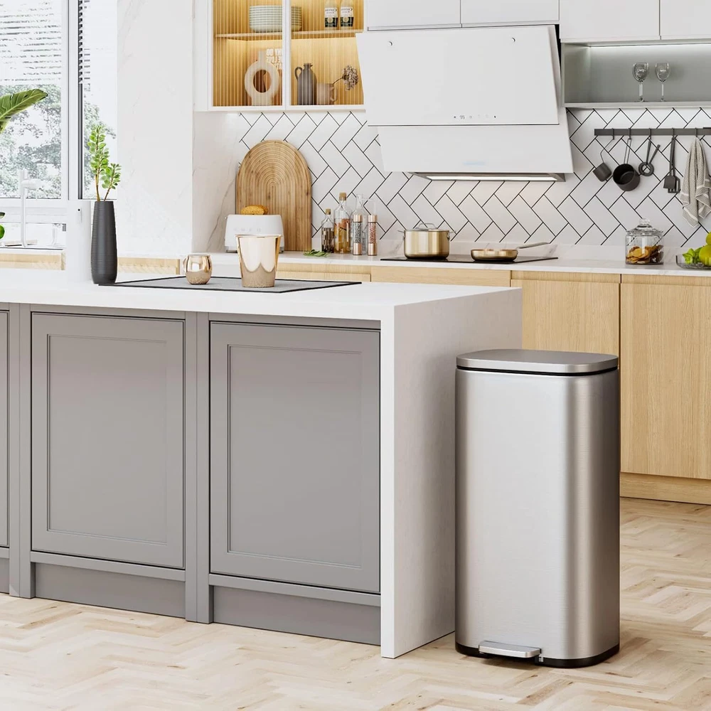 You may also like 12.1 Gallon Trash Can Plastic Step on Kitchen Wastebasket Hands-free Soft Close 36.06 USD 37.96 USD Free shipping 5% off Step-On Trash Can for Home and Kitchen with Lid Lock and Slow Close 13 Gallon 63.54 USD Free shipping Highboy Waste Container with Swing Lid 23 Gallon Slim Profile Easy Bag Removal 43.01 USD 49.05 USD Free shipping 12% off 20 Gallon Trash Can Plastic Kitchen Waste Bin with Odor Protection of Lid Black 56.99 USD Free shipping Automatic Touchless Motion Sensor Rectangular Trash Can 13 Gallon Black Trim 62.69 USD 71.49 USD Free shipping 12% off 23-Gallon Square Trash/Garbage Container with Untouchable Swing Top Lid Kitchen 71.96 USD Free shipping 13.2 Gallon Trash Can Plastic Motion Sensor Kitchen Touchless Trash Can Home Hot 38.4 USD 40.42 USD Free shipping 5% off Trash Can, Stainless Steel Garbage Can with Silent Lid, Durable Pedal & Inner Bucket, Pedal Garbage Bin for Kitchen Inside Outside (30L, Silver) Capacity 8 Gallons Color Silver Opening Mechanism Step-On Material Stainless Steel Recommended Uses For Product Kitchen Room Type Kitchen Special Feature Quiet Lid, Pedal Finish Type Stainless Steel Product Dimensions 13.7"L x 9.4"W x 25"H 【 STUNNING THAN THE PICTURES 】 The gloss of the trash can is not reflected in the picture, but can only be experienced with the naked eye. Might as well try to buy a classic 8 gallon trash can, its appearance will not let you down. 【 STAINLESS STEEL 】 The stainless steel trash bin is durable and rust-free, even if it gets water stains and household waste during use, it only needs to be wiped off with a clean rag dipped in water. 【 SILENT LID AND AVOID FINGERPRINT 】 Provided you with a quiet environment, the lid of kitchen trash can adopts noise reduction setting. Multiple touches tend to leave fingerprints, and FINETONES' garbage can lessens their marks. 【 RELEASE YOUR HANDS 】 Just lightly press the pedal with your feet and the lid will open without using your hands. The black inner basket is thick and heavy, and the handles on both sides are easy to operate. You may also like Blair Plush Faux-Fur Kids Saucer Chair Folding Chair Round Portable Seating 39.93 USD 42.03 USD Free shipping 5% off 23-Gallon Square Trash/Garbage Container with Untouchable Swing Top Lid Kitchen 71.96 USD Free shipping 14in Mattress Foundation Sturdy Metal Bed Frame No Box Spring Needed Queen Size 71.99 USD Free shipping 36" Large Trunk Duffel Bag Lightweight Rolling Wheel Luggage Handbag Gym Travel 43.27 USD 45.55 USD Free shipping 5% off 3-Drawers Kitchen Microwave Storage Cabinet Shelves Cupboard Stand Pantry Home 284.99 USD 299.99 USD Free shipping 5% off Console Table Entryway Storage Shelf Entry Modern Accent Sofa Table Living Room 63.95 USD 67.32 USD Free shipping 5% off Freeze Dried Pineapple Chunks 12 Oz Gluten Free All Natural for Food Storage New 40.05 USD 45.67 USD Free shipping 12% off Highboy Waste Container with Swing Lid 23 Gallon Slim Profile Easy Bag Removal 43.01 USD 49.05 USD Free shipping 12% off 10' X 10' Top Replacement Cover for Outdoor Canopy Shelter 50+ UV Protection Red 51.12 USD 53.81 USD Free shipping 5% off Portable CD Player Boombox with Digital Tunning AM FM Stereo Radio Kid CD Player 44.44 USD 50.67 USD Free shipping 12% off CD and Cassette Player Combo Portable Boombox AM FM Radio Tape Recording Home 71.99 USD Free shipping 22" Replacement Blade for Black Max Model MNA153016 and Snapper Model MNA153002 26.13 USD 27.51 USD Free shipping 5% off
