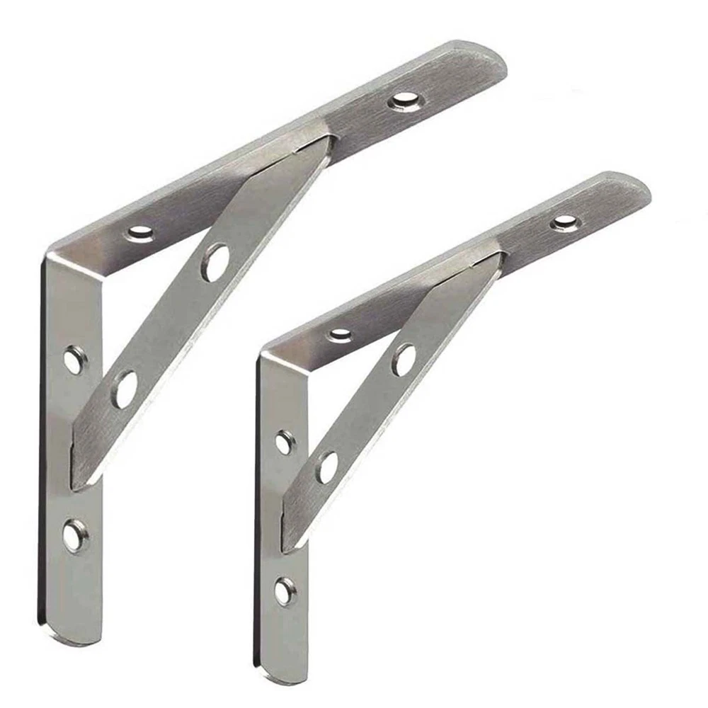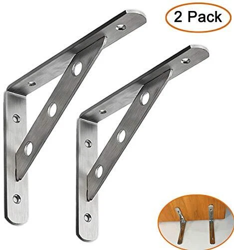 Color: Silver Tone Hole Quantity: 4 Holes Finish: Brushed Steel Installation Method: Screw Fixing Gross Weight: 0.57bl Or 260g Maximum Weight Capacity: 200bl Package Includes: 2 x Angle Brackets The screws are not included Solid Metal Construction, 3mm Thick, Heavy Duty Design Solid Stainless Steel Materials, Suitable For All Kinds Of Layer Board, Shelf, Glass, Marble, Fixed Support, A Must-Have In Good Diy Shelf. Bracket On The Wall, Just Put On A Board Shelf Can Become Beautiful And Generous. Is Often Used As Microwave Oven Racks, Shelves, Flower, Etc. Still Can Put The Computer In The Room, Cosmetics, Photos Etc 20-Days Return Guaranteed Note: ①the removable bridge in between is nice when installing as it gives you full access to the screw holes,so that's nice. but some customer don't love because the removable bridge will fall out of the slots with the upward force. If you need upward force,suggest to buy the welding product. ②Due to transportation,the crossbar falls out, you can squeeze it inward to make the angle less than 90 degrees (maybe 87 degrees or so), to ensure the support. ③All dimensions are measured manually with deviation(ranged)at 1-3 millimeter. If by any chance they are not, we are sorry for that. ①Constructed From High Quality Stainless Steel,Ensuring Quality And Longevity ②Product Name: Right Angle Brackets Or Heavy Duty Shelf Brackets Or Removable Brackets; Material: Stainless Steel ③Size: 15cmx11cmx2cm(L*W*H) / 6"x4"x0.79"(L*W*H);Thickness:3mm/0.12";Hole Dia.: 6mm/0.24" ④Package Content: 2 x Removable Brackets,the screws are not included,20-Days Return Guaranteed. ⑤Easy To Install: Sturdy And Durable.The Removable Bridge In Between Is Nice When Installing As It Gives You Full Access To The Screw Holes.