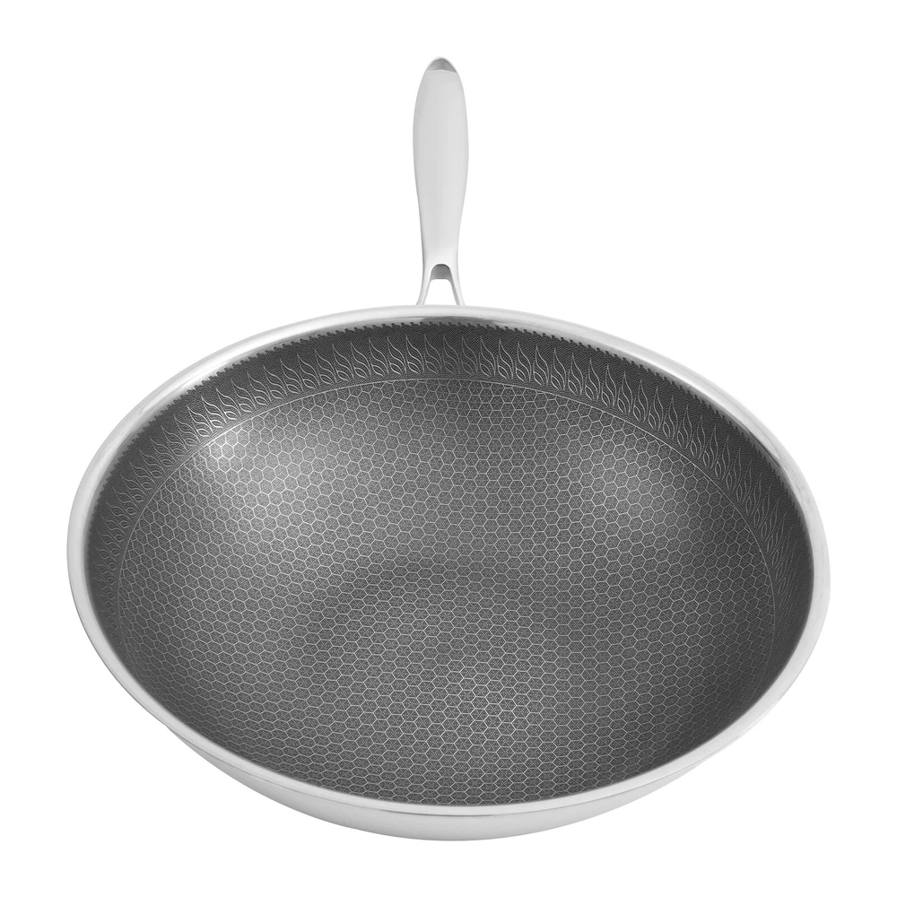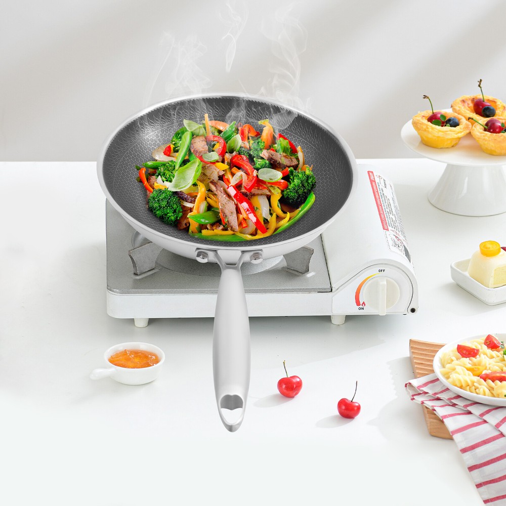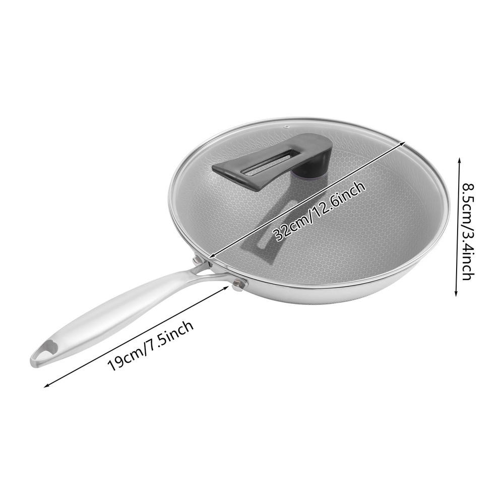 Stainless Steel Honeycomb Wok, Stainless Steel Cooking Frying Pan, Stir-fry Pan Stainless Steel Honeycomb Wok, Stainless Steel Cooking Frying Pan, Stir-fry Pan Description This SUS316 stainless steel honeycomb wok is not only corrosion-resistant and resistant to acids and alkalis but also ensures the safety of your and your family's food, making it an excellent choice for cooking in your kitchen. In addition, it is equipped with a tempered glass lid, which can meet the various cooking methods of frying and stewing, making it an indispensable helper in your kitchen. Key Features Sturdy and Durable: Premium tempered glass and SUS316 stainless steel with non-stick coating and high precision engraving processes provide the product with a sturdy structure and resistance to wear, rust, corrosion, cuts, and scrapes, making it not easily damaged by metal spatulas, thus ensuring great durability. Non-stick Surface: The non-stick coating and double-sided high-density honeycomb texture make food less likely to stick and smear, and make cleaning easier. Thoughtful Design: The body consists of seven die-casting layers which contain two layers of energy-storing substrate, which allows for faster and more even heat transfer and can maintain a constant temperature in the product, allowing for more efficient heat utilization, while effectively inhibiting the production of fumes caused by uneven heating. Use with Ease: The 7.5-inch long anti-scald handles and 4.83 lbs allow you to easily hold the wok and fry, giving you a better cooking experience. The rivetles s lining makes it easy for you to clean. The visualization of the lid makes it easy to keep track of the cooking progress of your food. Good Appearance: The unique pattern and smooth stainless steel surface make it not only a practical wok but also a beautiful artifact in your kitchen. Enjoy Cooking: The best way to live is to cook every meal with our quality cookware, enjoying the moments shared with family and friends and turning them into great memories. Whether you are a novice in the kitchen or a professional chef, this product will allow you to make the most of it. Wide Compatibility: The thick lid and proper size (12.6*3.4 inches) provide a good seal and plenty of space, which not only makes it suitable for stir-frying but also can be used for simmering to meet your various cooking needs. Buy with Confidence: We stand behind all our guests and look forward to assisting you with your purchase. It is our pleasure to answer your confusion and questions. The end of the story between us is not "we sell and you buy". Details High Polyheat Bottom: It provides a more even heat supply and avoids blackening and deformation of the bottom by heat in long-term use. Air Vent on Lid: When simmering with the lid on, it allows water vapor to escape and maintains consistent pressure inside and out for safer cooking. Application The product is suitable for use in gas stoves, and concave induction, ceramic, and electric stoves. It is suitable for hotels, restaurants, and other types of commercial premises as well as home kitchens. Specifications Color: Black, Silver Shape: Round Is Dishwasher Safe: Yes Material: SUS316 Stainless Steel, Tempered Glass Process: Non-stick Coating, High Precision Engraving Assembly Required: Yes Wok Size(D*H): 32*8.5cm/12.6*3.4in Handle Length: 19cm/7.5in Package Size: 34.5*34.5*13cm/13.58*13.58*5.12in Gross Weight: 2.3kg/5.07lbs Net Weight: 2.19kg/4.83lbs Package Included 1* Stainless Steel Honeycomb Wok 1* Lid Other Accessories for Assembly Notes Please check the size carefully before ordering. Please note that before using this product for the first time, you can wash the pots and pans once with slightly warm white vinegar, and then dry the inside and outside of the pots and pans with water before using them. Please remember to wash and dry the pots and pans with a dry cloth after use, otherwise, the detergent left inside the pots and pans will have a corrosive effect on the surface of the pots and pans when they are wet. Please allow the slight color difference caused by the shooting light and 1-3cm error due to manual measurement, and make sure you do not mind before you order. Payment Delivery details Terms of sales About us Contact us Payment We accept ebay payment 。 Fees such as import duties, taxes are not included in the item price or shipping costs. These charges are the buyer's responsibility. Delivery details Shipping: 2-9 working days to: USA Terms of sales We maintain high standards of excellence and strive for hundred percent customer satisfaction. Feedback is very important to us. We hope that you contact us immediately before you give neutral or negative feedback, so that we can address your concerns. It is impossible to address issues if we do not know about them! About us Your satis faction is our ultimate goal. We work hard to earn your trust and future business. Our certified technicians have tested each item before shipping. The unit comes with 1 year limited warranty on all manufacturing defects. a) If you receive a defective item, you may return it or ask for a discount. Please contact us within 14 days after you receive the package. b) What you returned must be intact and in its original packaging as re? u. Customer is responsible for shipping costs of the returned item. c) We will cover the cost of shipping back t with the shipping rate indicated in the registration page. We will send you a new unit or refund the full payment you paid. Thank you. Contact us Business Hour Business Hour: Monday To Friday: 8:30 AM to 5:00 PM (Beijing China time) Due to time zones, our reply to your questions may not be immediately. But within above working time, we will reply your email within 24 hours. If it's non-workdays, please kindly be patient and wait till Monday. Please contact us with ebay message. Please feel free to contact us if you have any questions. Monday To Friday: 8:30 AM to 5:00 PM (Beijing China time) D
