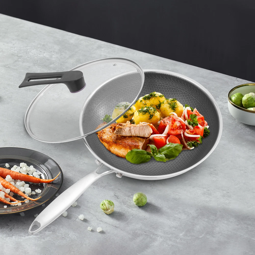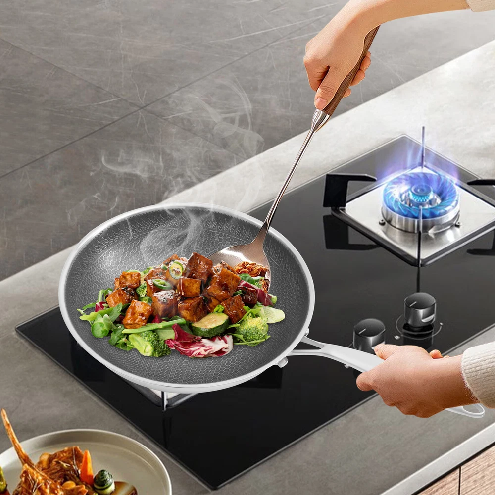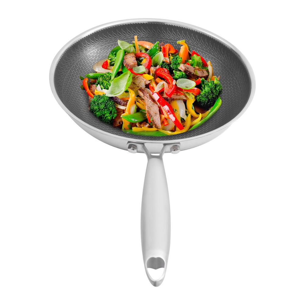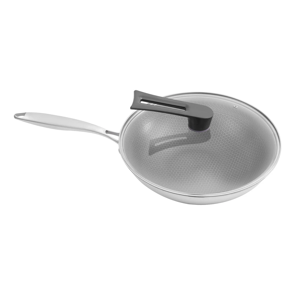 Stainless Steel Honeycomb Wok, Stainless Steel Cooking Frying Pan, Stir-fry Pan Stainless Steel Honeycomb Wok, Stainless Steel Cooking Frying Pan, Stir-fry Pan Description This SUS316 stainless steel honeycomb wok is not only corrosion-resistant and resistant to acids and alkalis but also ensures the safety of your and your family's food, making it an excellent choice for cooking in your kitchen. In addition, it is equipped with a tempered glass lid, which can meet the various cooking methods of frying and stewing, making it an indispensable helper in your kitchen. Key Features Sturdy and Durable: Premium tempered glass and SUS316 stainless steel with non-stick coating and high precision engraving processes provide the product with a sturdy structure and resistance to wear, rust, corrosion, cuts, and scrapes, making it not easily damaged by metal spatulas, thus ensuring great durability. Non-stick Surface: The non-stick coating and double-sided high-density honeycomb texture make food less likely to stick and smear, and make cleaning easier. Thoughtful Design: The body consists of seven die-casting layers which contain two layers of energy-storing substrate, which allows for faster and more even heat transfer and can maintain a constant temperature in the product, allowing for more efficient heat utilization, while effectively inhibiting the production of fumes caused by uneven heating. Use with Ease: The 7.5-inch long anti-scald handles and 4.83 lbs allow you to easily hold the wok and fry, giving you a better cooking experience. The rivetles s lining makes it easy for you to clean. The visualization of the lid makes it easy to keep track of the cooking progress of your food. Good Appearance: The unique pattern and smooth stainless steel surface make it not only a practical wok but also a beautiful artifact in your kitchen. Enjoy Cooking: The best way to live is to cook every meal with our quality cookware, enjoying the moments shared with family and friends and turning them into great memories. Whether you are a novice in the kitchen or a professional chef, this product will allow you to make the most of it. Wide Compatibility: The thick lid and proper size (12.6*3.4 inches) provide a good seal and plenty of space, which not only makes it suitable for stir-frying but also can be used for simmering to meet your various cooking needs. Buy with Confidence: We stand behind all our guests and look forward to assisting you with your purchase. It is our pleasure to answer your confusion and questions. The end of the story between us is not "we sell and you buy". Details High Polyheat Bottom: It provides a more even heat supply and avoids blackening and deformation of the bottom by heat in long-term use. Air Vent on Lid: When simmering with the lid on, it allows water vapor to escape and maintains consistent pressure inside and out for safer cooking. Application The product is suitable for use in gas stoves, and concave induction, ceramic, and electric stoves. It is suitable for hotels, restaurants, and other types of commercial premises as well as home kitchens. Specifications Color: Black, Silver Shape: Round Is Dishwasher Safe: Yes Material: SUS316 Stainless Steel, Tempered Glass Process: Non-stick Coating, High Precision Engraving Assembly Required: Yes Wok Size(D*H): 32*8.5cm/12.6*3.4in Handle Length: 19cm/7.5in Package Size: 34.5*34.5*13cm/13.58*13.58*5.12in Gross Weight: 2.3kg/5.07lbs Net Weight: 2.19kg/4.83lbs Package Included 1* Stainless Steel Honeycomb Wok 1* Lid Other Accessories for Assembly Notes Please check the size carefully before ordering. Please note that before using this product for the first time, you can wash the pots and pans once with slightly warm white vinegar, and then dry the inside and outside of the pots and pans with water before using them. Please remember to wash and dry the pots and pans with a dry cloth after use, otherwise, the detergent left inside the pots and pans will have a corrosive effect on the surface of the pots and pans when they are wet. Please allow the slight color difference caused by the shooting light and 1-3cm error due to manual measurement, and make sure you do not mind before you order. Payment Delivery details Terms of sales About us Contact us Payment We accept ebay payment 。 Fees such as import duties, taxes are not included in the item price or shipping costs. These charges are the buyer's responsibility. Delivery details Shipping: 2-9 working days to: USA Terms of sales We maintain high standards of excellence and strive for hundred percent customer satisfaction. Feedback is very important to us. We hope that you contact us immediately before you give neutral or negative feedback, so that we can address your concerns. It is impossible to address issues if we do not know about them! About us Your satis faction is our ultimate goal. We work hard to earn your trust and future business. Our certified technicians have tested each item before shipping. The unit comes with 1 year limited warranty on all manufacturing defects. a) If you receive a defective item, you may return it or ask for a discount. Please contact us within 14 days after you receive the package. b) What you returned must be intact and in its original packaging as re? u. Customer is responsible for shipping costs of the returned item. c) We will cover the cost of shipping back t with the shipping rate indicated in the registration page. We will send you a new unit or refund the full payment you paid. Thank you. Contact us Business Hour Business Hour: Monday To Friday: 8:30 AM to 5:00 PM (Beijing China time) Due to time zones, our reply to your questions may not be immediately. But within above working time, we will reply your email within 24 hours. If it's non-workdays, please kindly be patient and wait till Monday. Please contact us with ebay message. Please feel free to contact us if you have any questions. Monday To Friday: 8:30 AM to 5:00 PM (Beijing China time) D