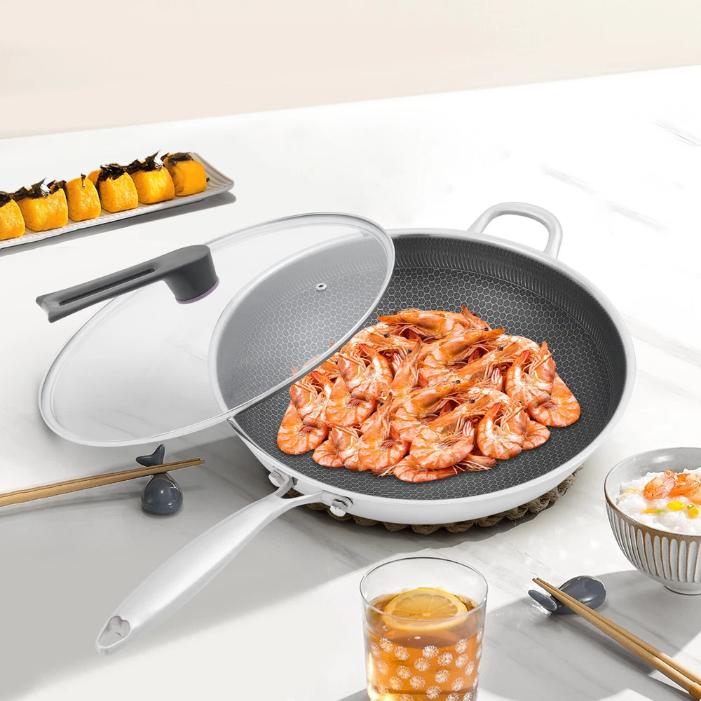 Stainless Steel Honeycomb Wok Frying Pan for Stir-Fry Cooking