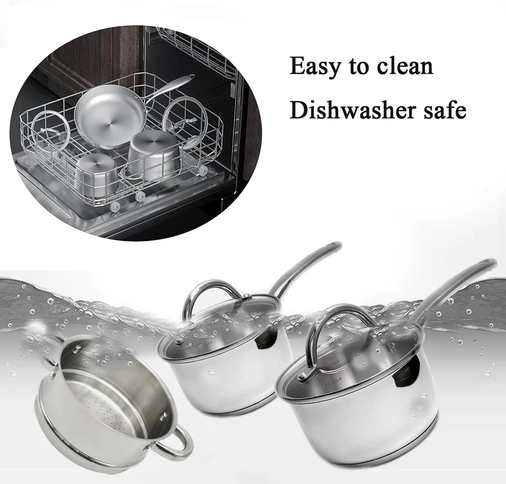 This saucepan set is a game-changer in the kitchen! The high-quality 18/10 stainless steel with bonded aluminum ensures fast, even heating—no more hot spots. The tempered glass lid lets me peek at my food without losing heat, and the steam hole prevents messy boil-overs. The sturdy steel handles stay cool and provide a secure grip, plus they’re easy to hang. Cleanup is effortless thanks to the polished finish, and it works perfectly on my induction stove. Perfect for everything from simmering sauces to frying veggies. A must-have for any home cook!