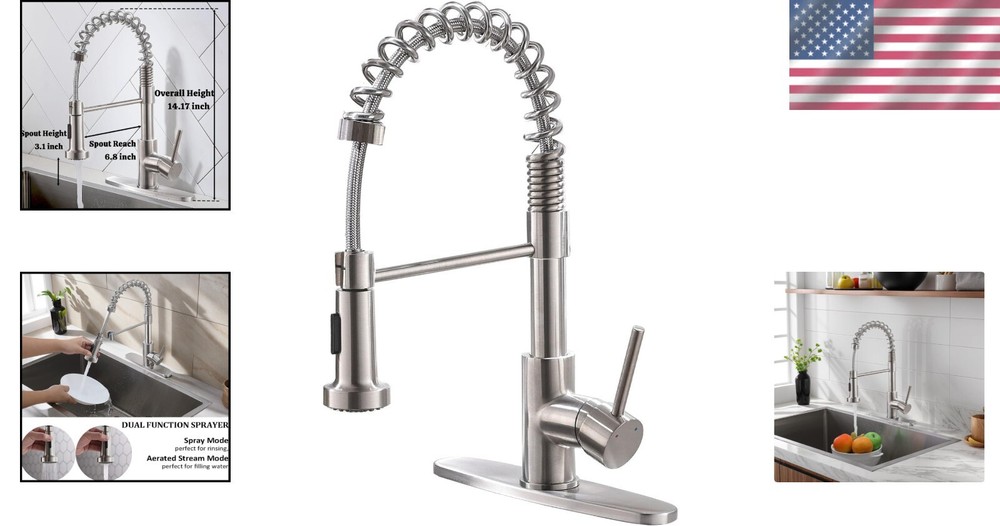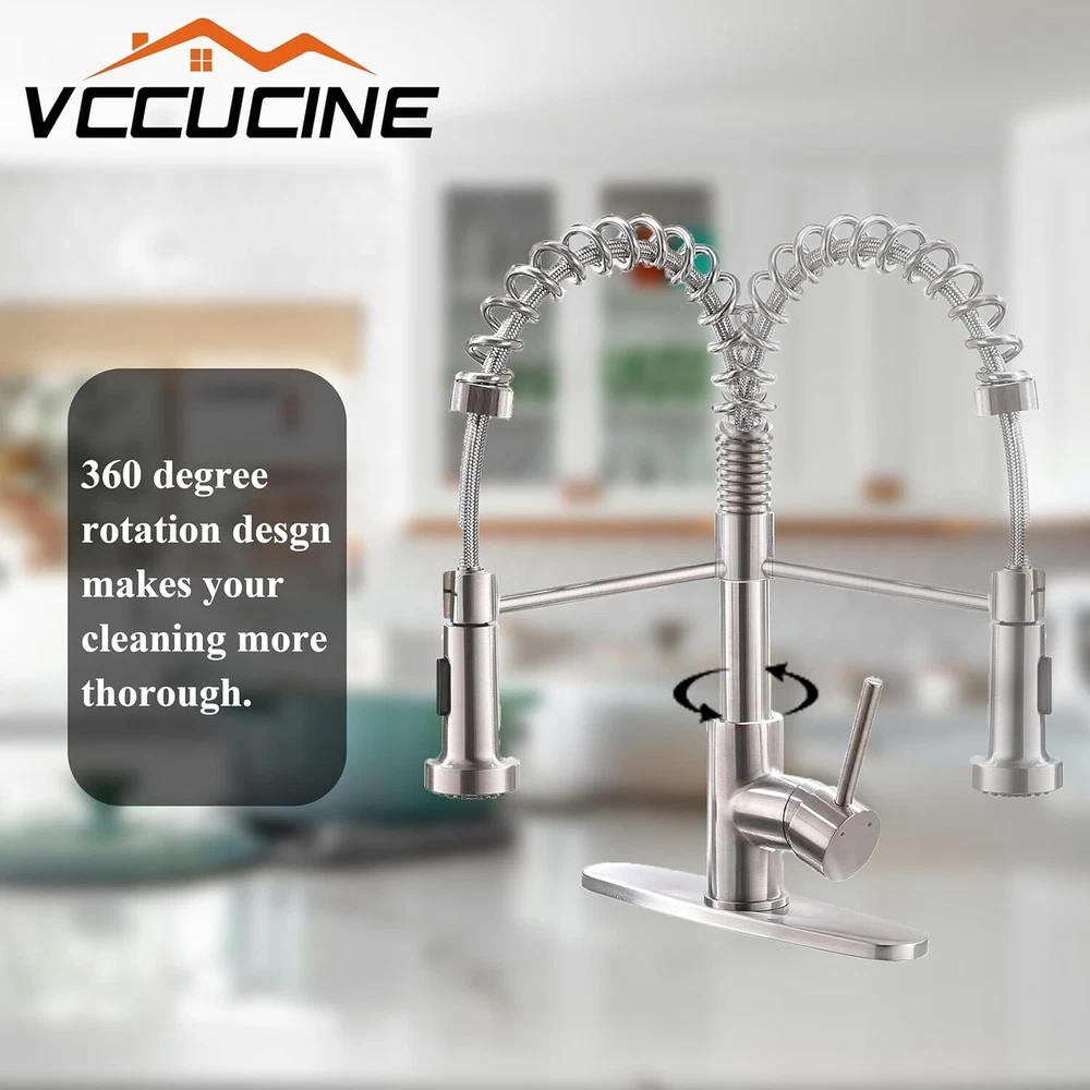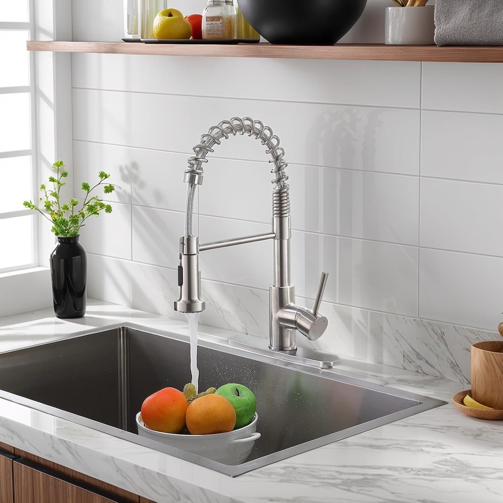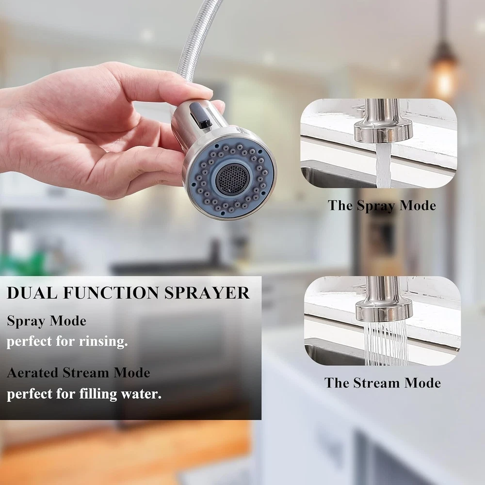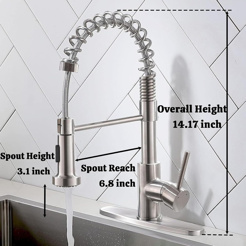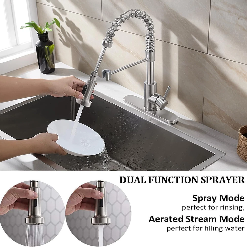 Stainless Steel Kitchen Faucet with Pull Down Sprayer Brushed Nickel, 360 Swivel ‹ › ‹ › ‹ › ‹ › ‹ › ‹ › ‹ › ‹ › ‹ › ‹ › ‹ › Stainless Steel Kitchen Faucet with Pull Down Sprayer Brushed Nickel, 360 Swivel Features: Modern Design: Sleek and minimalistic kitchen faucet perfect for all decor styles, adding a fresh and clean look to your kitchen. High Quality: Crafted with superior corrosion and rust-resistant brushed nickel finish for a lasting shine. Eco-friendly lead-free construction to ensure the health of your family. Top-quality ceramic cartridge provides a lifetime of drip-free use, based on ASME A112.18.1 standards for a guaranteed 500,000 cycles. Dual Function Sprayer: Effortlessly switch between spray and stream settings using the toggle button - ideal for rinsing dishes or filling pots. Easy Installation: Includes a quick installation tool and 3/8" hot and cold water hoses for added convenience. Satisfaction Guaranteed: In case of any questions, our dedicated customer support is always available to assist you. Dimensions: Spout : 6.29" Overall Height: 13.77" Net Weight: 4.4 lb Gross Weight: 6 lb Why Choose Our Stainless Steel Kitchen Faucet? Transform your kitchen experience with our elegantly designed Stainless Steel Kitchen Faucet featuring a pull-down sprayer and 360-degree swivel. Its materials ensure not only style but also durability, making it a long-lasting addition to your home. Engage your culinary creativity with ease, from rinsing fresh produce to filling cookware without fuss. Invest in quality and contemporary design – choose our kitchen faucet for a brighter, more functional kitchen. Elevate your space today with this perfect blend of form and function! Shipping Free & Fast Shipping - We offer free shipping to most of the USA with a normal delivery time of 3-7 days. However, due to the current situation, additional delivery time (up to 3 weeks) may be required for some items. Alternative Carriers - We may use alternative carriers (e.g. USPS, FedEx, UPS, etc.) to ensure your package arrives safely and on time. Due to the use of multiple carriers, we are unable to provide a tracking number automatically. Handling Time - Orders are processed and shipped within 1-2 business days of receiving cleared payment. Shipping Restrictions - Shipping to Alaska, Hawaii, Puerto Rico, Guam, and other US territories may incur shipping charges or delivery restrictions. Please contact us before ordering, or your order can be refunded/cancelled. State Restrictions - There may be restrictions based on your state of purchase. For example, certain items may not be shipped to California due to state regulations. Contact for Tracking Updates - If you require tracking updates or have any concerns about the delivery of your order, please feel free to contact us, and we will be happy to assist you. Return 30-Day Hassle-Free Returns - We want you to be completely satisfied with your purchase. If you are not, you can return the item within 30 days of receiving it for a full refund or exchange. Easy Return Process - To start a return, simply contact us and we will provide you with a prepaid return shipping label and detailed instructions. Restocking Fee - There are no restocking fees for returns. However, the buyer is responsible for return shipping costs if the return is not due to a seller's error. Refund Processing Time - Refunds will be processed within 5 business days of receiving the returned item in its condition. Payment We accept all major credit cards, PayPal, and Apple Pay for your convenience. Your payment information is secure and encrypted to ensure a safe and seamless transaction. Please complete your payment within 3 days of purchase to avoid any delays in shipping. Feedback Your feedback is extremely important to us. We strive to provide the best products and customer service possible. If you are satisfied with your purchase, please take a moment to leave us a positive review. If you have any concerns or issues with your order, please contact us before leaving negative feedback. We are committed to resolving any problems and ensuring your satisfaction. Contact Us If you have any questions or concerns, please feel free to out to our customer support team. You can contact us through the eBay messaging system. We are available Monday to Friday, 9:00 am to 5:00 pm EST, and we will do our best to respond to your inquiry within 24 hours. Buy it now and enjoy a pleasant shopping experience! Item Weight: 4.4 Unit Quantity: 1 Material: Stainless Steel Suitable For: Kitchen Sink Features: Pull-Out,Dual Function Sprayer,360 Swivel Room: Kitchen Items Included: Installation Hardware Type: Kitchen Faucet Finish: Brushed Number of Faucet Holes: 1 Color: Brushed Nickel Number of Faucet Handles: 1 Handle Type: Lever Faucet Mounting Type: Deck Mount Shape: Pull-Down Installation: Deck Mounted Faucet Hole Spacing: 1 Unit Type: lb
