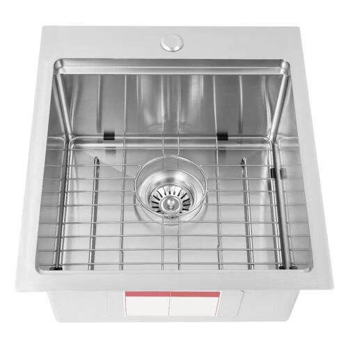 Kitchen Sink Workstation Sink with Cutting Board Stainless Steel Kitchen Sink Description Made of high-quality 304 stainless steel, this kitchen sink is exquisitely crafted, wear- resistant , and corrosion- resistant . Its enlarged and deepened sink not only alleviates the splashing problem but also increases space utilization for cleaning numerous cookwares. The design with a cutting board and bottom rinse grid allows you to wash and cut fruits and vegetables simultaneously, with which you can enjoy a more convenient life. Key Features Strong and Durable: Made of premium 304 stainless steel through the brushed process, it is corrosion and heat- resistant and will remain as good as new for a long time, even in the face of frequent daily use and all kinds of kitchen utensils collision. Space Optimization: The workstation sink is designed to hold the cutting board on a single track, maximizing the available space on the countertop. Large Capacity: Its large washing size ( 15*15in ) allows you to clean large amounts of plates, dishes, and pots, and wash fruits, and vegetables at one time without splashing, saving time. Life Assistant: This sink with a cutting board and bottom rinse grid cleverly combines washing and meal preparation functions, allowing you to enjoy a convenient life. Invisible and Beautiful: It supports three mount types: top mount, flush mount, and under mount, which will not affect the aesthetics when the sink is flush with the countertop, and the smooth lines and low-key silver-colored appearance can also add a touch of simplicity and elegance to the kitchen. Hassle-free Cleaning: The brushed surface is not easy to leave marks, you can remove surface dust and grease by wiping with a damp cloth and detergent (not included). User Friendly: The rubber mute mat can effectively reduce the noise generated by the faucet water release and the collision of dishes, creating a quiet kitchen environment. The anti-condensation coating effectively prevents excessive temperature differences and protects the cabinet from moisture. Rapid Drainage: The X-shaped water guidelines and enlarged 3.5-inch drain hole help drain water quickly. Customer Service: We aim to provide quality products and services. If you have any problems, please feel free to contact us. We will reply to you and solve the problem for you as soon as possible. Details Rounded Corners: They are not easy to leave hygiene blind spots, making it convenient for you to clean the sink. Bottom Rinse Grid: With protective covers, it can prevent scratches on the kitchen utensils and sink. Utensils can be placed on the rinse grid for fast drainage. Thoughtful Handles: Two curved handles on either side of the cutting board make it easy to reach and move. Application It can be widely used in homes, restaurants, laundries, basements, bars, kitchens, food trucks, dessert stores, coffee shops, hotels, garages, gardens, etc. for washing dishes and cutting vegetables and fruits. Specification Material: 304 Stainless Steel Color: Silver Style: Modern Process: Brushed Shape: Rectangular Mount Type: Topmount, Undermount, Flushmount Assembly Required: Yes Thickness: 100mm/0.39in Drain Hole Diameter: 8.9cm/3.5in Cutting Board Size: 38.1*38.1cm/15*15in Product Size: 43.1*48.2*21.9cm/17*19*8.6in Package Size: 53*48*27cm/20.87*18.90*10.63in Gross Weight: 8.4kg/18.52lbs Net Weight: 7.8kg/17.2lbs Package Included 1* Stainless Steel Kitchen Sink 1* Cutting Board 1* Bottom Rinse Grid 1* Strainer Notes Please check the style and size before purchasing. Please do not scratch its surface with sharp objects to prolong its service life. If you want to get a better installation effect, we suggest you ask professional workers to install it. Please allow the slight color difference caused by the shooting light and 1-3cm error due to manual measurement and make sure you do not mind before ordering. Payment Delivery details Terms of sales About us Contact us Payment We accept ebay payment 。 Fees such as import duties, taxes are not included in the item price or shipping costs. These charges are the buyer's responsibility. Delivery details Shipping: 2-9 working days to: USA Terms of sales We maintain high standards of excellence and strive for hundred percent customer satisfaction. Feedback is very important to us. We hope that you contact us immediately before you give neutral or negative feedback, so that we can address your concerns. It is impossible to address issues if we do not know about them! About us Your satis faction is our ultimate goal. We work hard to earn your trust and future business. Our certified technicians have tested each item before shipping. The unit comes with 1 year limited warranty on all manufacturing defects. a) If you receive a defective item, you may return it or ask for a discount. Please contact us within 14 days after you receive the package. b) What you returned must be intact and in its original packaging as re? u. Customer is responsible for shipping costs of the returned item. c) We will cover the cost of shipping back t with the shipping rate indicated in the registration page. We will send you a new unit or refund the full payment you paid. Thank you. Contact us Business Hour Business Hour: Monday To Friday: 8:30 AM to 5:00 PM (Beijing China time) Due to time zones, our reply to your questions may not be immediately. But within above working time, we will reply your email within 24 hours. If it's non-workdays, please kindly be patient and wait till Monday. Please contact us with ebay message. Please feel free to contact us if you have any questions. Monday To Friday: 8:30 AM to 5:00 PM (Beijing China time) Due to time zones, our reply to your questions may not be immediately. But within above working time, we will reply your email within 24 hours. If it's non-workdays, please kindly be patient and wait till Monday. Please contact us with ebay message. Please feel free to contact us if you have any questions. Please Not