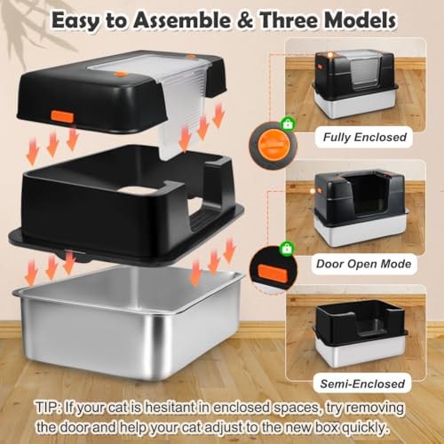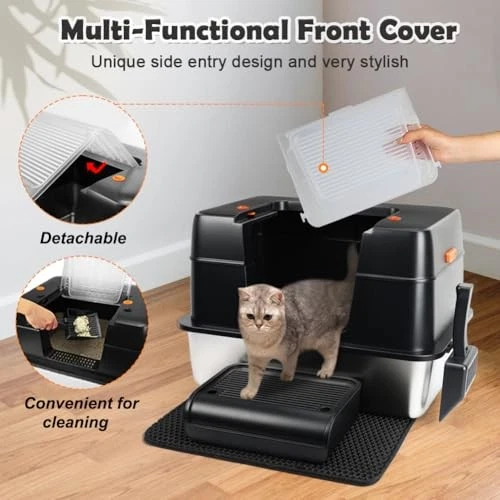 Menu 1. We require immediate payment. 2. We currently accept payment via eBay managed payments only. 3. Once payment is cleared, we will dispatch your shipment within 1-3 business days. Please refer to the "Shipping" tab for more information regarding shipping speed to your destination. Stainless Steel Litter Box, XL Side Entry Extra Large Litter Box with Lid for Big Cats & Kitty, Removable Enclosed Metal Cat Pan with High Sided Enclosure, Scoop, Mat, Footboard (Black) Product description XL SIZE FOR CATS UP TO 16LBS - This stainless steel cat litter box measures 23.6 x 15.7 x 15.55 inches, providing ample space for cats. The 5.9-inch high sides and 3.75-inch top shield offer double protection, effectively preventing litter scatter. Please keep in mind the space it will occupy before ordering THREE VERSATILE MODES - Our extra large litter box offers three modes: fully enclosed for maximum odor control to keep your home fresh; open door for added privacy and visibility, helping cats adjust to the new box; and semi-enclosed for optimal airflow and easy cleaning, especially for cats wearing collars PREMIUM STAINLESS STEEL - Built with thickened stainless steel, this litter box is rust-resistant, scratch-proof, durable and long-lasting. It helps reduce odors more effectively than plastic alternativess, keeping the space fresh. The box holds up to 110 lbs and lasts 3-5 years, reducing the need for frequent replacements EASY-TO-CLEAN DESIGN - The smooth stainless steel surface makes it simple to rinse and wipe down. Its modular design allows you to lift the metal litter pan quickly for cleaning, without having to move other parts. The removable folding door further simplifies daily cleaning, making litter maintenance a breeze ALL-INCLUSIVE ACCESSORIES - Our package includes a stainless steel litter box, scoop, footboard, honeycomb mat, slip-resistant pads, and an instruction manual. The footboard helps kittens and seniors access the box, while the double-layer honeycomb mat traps stray litter, ensuring a clean floor PLEASE MESSAGE US IF YOU HAVE ANY OTHER QUESTIONS, AND MANY THANKS FOR READING ALL OF THIS. Copyright ©#. All Rights Reserved.