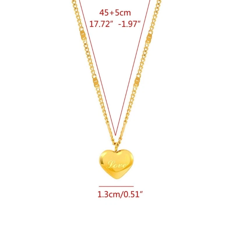 Stainless Steel Love Heart Necklace Simple Pendant Necklace Fashion Jewelry Features: This necklace is stainless steel. It is comfortable to wear, and not easy to change color. They will be great clothing accessories, easy to with different occasions. Fashion jewelry is very suitable for hip-hop, bands, parties, bars, dating, studio photos and videos. The Love heart pendant necklace and luck. It is the best yourself, relatives, family, friend, brothers and colleagues. Simple heart-shaped but fashionable This pendant necklace is very beautiful and easy to wear every day. Specifications: Stainless Steel Color: Gold Size: As Shown in the Picture Package Includes: 1x Pendant Necklace note: Please allow 1-2cm errors due to manual measurement, make sure that you do not mind before you order. Due to the difference between different monitors, the picture may not reflect the actual color of the item.