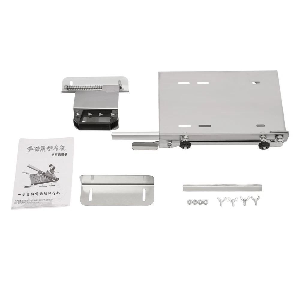 Stainless Steel Manual Frozen Meat Slicer Mutton Beef Thick Adjustable BBQ New Stainless Steel Manual Frozen Meat Slicer Mutton Ham Beef Cutter Cutting Machine Description The efficiency of meat cutting is low, your hands are prone to injury, and the thickness of the meat slices is difficult to control. Look at our manual frozen meat slicer. It is made of 430 stainless steel and aluminum alloy, so it is corrosion-resistant and sturdy. Its simple structure and smooth surface allow for quick installation and cleaning. If you are a hot pot lover and often go to the supermarket to buy sliced meat, you can make frozen meat at home and slice it with this slicer. Key Features Build to Last: The food-grade 430 stainless steel, aluminum alloy, and exquisite polishing process make this product wear-resistant, corrosion-resistant, rust-resistant, and safe to use, so it can withstand the test of time well. Adjustable Thickn ess: According to your wishes or different kinds of food, you can adjust the slice thickness from 0.3-8mm through two screws, allowing you to enjoy more variable meat. High Stability: Extended balance feet(2.56in), four non-slip sponge mats, U-shaped support frame can make it stably placed on the table, helping you to cut meat stable, without turning over, so you can use it confidently. Strong Fixation: Detachable and adjustable fixed brackets(1.57-6.69in) and the fixed splint with sawtooth can help you fix different types of food better and complete the cutting quickly. Compact and Lightweight: The compact size of 14.37*7.78*2.36 inches and the weight of 3.75 lbs allow for easy storage, saving you a lot of space, and you can carry it to different places. Easy Installation: The simple structure and complete installation parts allow you to quickly complete the installation and start to use it. Effortless Cleaning: The smooth surface and simple structure allow you to easily remove dust and residues with a towel and water. Ideal Gift: With good performance, this product can be used as a holiday or housewarming gift for family, friends, and lovers so that they can enjoy a more convenient life. Guaranteed Customer Service: We aim to provide quality products and services. If you have problems, please feel free to contact us. We will reply and solve the problem for you as soon as possible. Details Protective Film: It prevents the product from being scratched during transportation. Round Corners: The arc design can effectively care for your skin compared with the traditional square corners. Practical Spring: It allows for automatic meat delivery, saving effort and improving cutting efficiency. Ergonomic Handle: The extended aluminum alloy handle(16.14in ) is sturdy and durable and allows for a comfortable grip, saving effort and reducing fatigue even in long-term use. Application It can be used to cut carrots, cucumbers, potatoes, rice cakes, lotus roots, frozen meat, fish chunks, ribs, chicken chunks, etc. It is widely used in restaurants and homes. Specification Material: 430 Stainless Steel, Aluminum Alloy Style: Modern Shape: Rectangle Mounting Type: Tabletop Assembly Required: Yes Process: Polishing Number of Items: 1 Color: Silver Extended Balance Feet Length: 6.5cm/2.56in Stand Adjustable Range: 4-17cm/1.57-6.69in Adjustable Slice Thickness: 0.3-8mm/0.012-0.36in Handle Length: 41cm/16.14in Overall Size: 36.5*20*6cm/14.37*7.78*2.36in Package Size: 49*9*20cm/19.29*3.54*7.78in Gross Weight: 2kg/4.41 lbs Net Weight: 1.7kg/3.75 lbs Package Included 1 * Manual Frozen Meat Slicer 1* Chinese Manual All Accessories for Assembly Notes It cannot cut large bones, such as beef ribs, pig's trotters, large ribs, and bones. Please try not to cut hard fruits such as apples, otherwise, the blade will be damaged. It is recommended to wear gloves or a towel (not included)when cutting frozen meat. If the meat is not properly frozen, it would be difficult to achieve a clean cut. You can use a few drops of cooking oil(not included) on the food slicer blades and bearings for simple maintenance. Please do not touch the blade with your hand to test its sharpness. Please do not use hard cleaning tools to avoid scratching the surface. Please dry the water after cleaning and store it in a cool, dry place. Please place it in a place that is not easily accessible to children. Please allow the slight color difference caused by the shooting light and 1-3cm error due to manual measurement, and make sure you do not mind before you place the order. Payment Delivery details Terms of sales About us Contact us Payment We accept ebay payment 。 Fees such as import duties, taxes are not included in the item price or shipping costs. These charges are the buyer's responsibility. Delivery details Shipping: 2-9 working days to: USA Terms of sales We maintain high standards of excellence and strive for hundred percent customer satisfaction. Feedback is very important to us. We hope that you contact us immediately before you give neutral or negative feedback, so that we can address your concerns. It is impossible to address issues if we do not know about them! About us Your satis faction is our ultimate goal. We work hard to earn your trust and future business. Our certified technicians have tested each item before shipping. The unit comes with 1 year limited warranty on all manufacturing defects. a) If you receive a defective item, you may return it or ask for a discount. Please contact us within 14 days after you receive the package. b) What you returned must be intact and in its original packaging as re? u. Customer is responsible for shipping costs of the returned item. c) We will cover the cost of shipping back t with the shipping rate indicated in the registration page. We will send you a new unit or refund the full payment you paid. Thank you. Contact us Business Hour Business Hour: Monday To Friday: 8:30 AM to 5:00 PM (Beijing China time) Due to time zones, our reply to your questions may not be immediately. But withi
