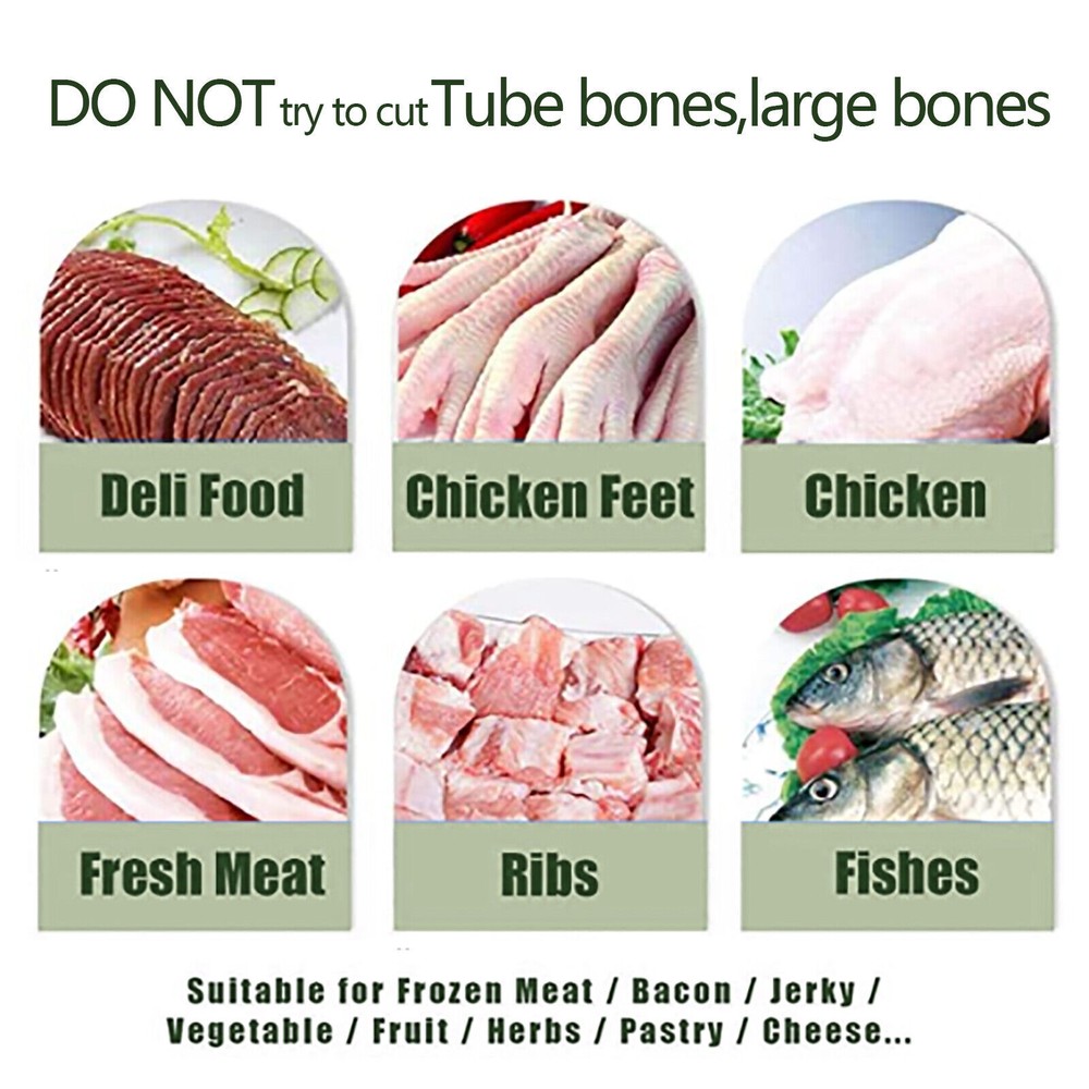Manual Meat Slicer Bone Cutter Stainless Steel Beef Bone Cutting Machine Manual Frozen Meat Slicer Stainless Steel Small Ribs Cutter Cutting Machine Description : Fit for: Small Ribs, Cartilage, Jerky, , Beef and Mutton Rolls,Chicken, Fish, Vegetable, Cheese, Etc. Not Fit for: Big and Hard Bones like Cow and Sheep, Trotters, Cattles, Large Leg Bones of Pigs Stainless Steel Material--the Blade Is Forged from 430 Stainless Steel at Multiple High Temperatures, Which Is More Sturdy and Durable. the 270mm Long Blade Allows You to Easily Cope with the Needs of Daily Cutting of Chicken Legs and Ribs. the Body Is Made of 202 Stainless Steel Forged with Rounded Corners, Which Makes It Safer and More Stable When Used. You Can Clean the Entire Slicer with Water, but Please Pay Attention to Maintenance. Non-slip Suction Cups & Snaps --the 5 Suction Cups on the Base Allow the Machine to Be Firmly Adsorbed on the Flat Operating Table, Bringing Stability to Your Slicing Work. the Addition of Adjustable Anti-slip Snaps Prevents the Food from Slipping During Cutting, Making the Slicing Work Smoother. Collection Tray --Each Package Comes with a Tray, Which Can Be Used to Accept the Cut Food, so That the Food Is Kept Hygienic and Will Not Contaminate the Tabletop. the Removable Design Makes It Easy to Clean and Store. Application --If You Have Trouble Cutting Chicken Legs, Ribs, Frozen Meat and some Bone-bearing Ingredients, Then This Machine Is Definitely the Choice for You to Solve These Troubles. You Can Add One in Your Kitchen, It Is Definitely a Good Kitchen Helper; You Can Also Add One in Your Restaurant, It Will save You a Lot of Time to Cut Ingredients, While Absolutely Saving Effort. Parameters: Net Weight: 2.1kg Dimension: 390*145*70mm Blade Length: 270mm/10.6in. Effective Cutting Length: 243mm/9.6in. Base Height: 47mm Payment Delivery details Terms of sales About us Contact us Payment We accept ebay payment 。 Fees such as import duties, taxes are not included in the item price or shipping costs. These charges are the buyer's responsibility. Delivery details Shipping: 2-9 working days to: USA Terms of sales We maintain high standards of excellence and strive for hundred percent customer satisfaction. Feedback is very important to us. We hope that you contact us immediately before you give neutral or negative feedback, so that we can address your concerns. It is impossible to address issues if we do not know about them! About us Your satis faction is our ultimate goal. We work hard to earn your trust and future business. Our certified technicians have tested each item before shipping. The unit comes with 1 year limited warranty on all manufacturing defects. a) If you receive a defective item, you may return it or ask for a discount. Please contact us within 14 days after you receive the package. b) What you returned must be intact and in its original packaging as re? u. Customer is responsible for shipping costs of the returned item. c) We will cover the cost of shipping back t with the shipping rate indicated in the registration page. We will send you a new unit or refund the full payment you paid. Thank you. Contact us Business Hour Business Hour: Monday To Friday: 8:30 AM to 5:00 PM (Beijing China time) Due to time zones, our reply to your questions may not be immediately. But within above working time, we will reply your email within 24 hours. If it's non-workdays, please kindly be patient and wait till Monday. Please contact us with ebay message. Please feel free to contact us if you have any questions. Monday To Friday: 8:30 AM to 5:00 PM (Beijing China time) Due to time zones, our reply to your questions may not be immediately. But within above working time, we will reply your email within 24 hours. If it's non-workdays, please kindly be patient and wait till Monday. Please contact us with ebay message. Please feel free to contact us if you have any questions. Brand OCASAMI Manufacturer Warranty 3 Years Country/Region of Manufacture China Year of manufacture 2023 *Feature* Creative Design,Durable Material,Beautiful Appearance Characteristic Convenient Use,Easy Operation,Easy installation Highlights Compact Design,Unique Appearance,high reliability Transportation does not include canarias Features Durable Warranty 3 Years Surface Finish 1 Made of high quality material shipping notice Can not ship to Puerto Rico,Alaska/Hawaii Dimension 390*145*70mm Blade length 270mm/10.6in. MPN Does Not Apply Effective cutting length 243mm/9.6in Base height 47mm UPC Does not Apply Power Type Manual Blade Size N/A Horsepower N/A