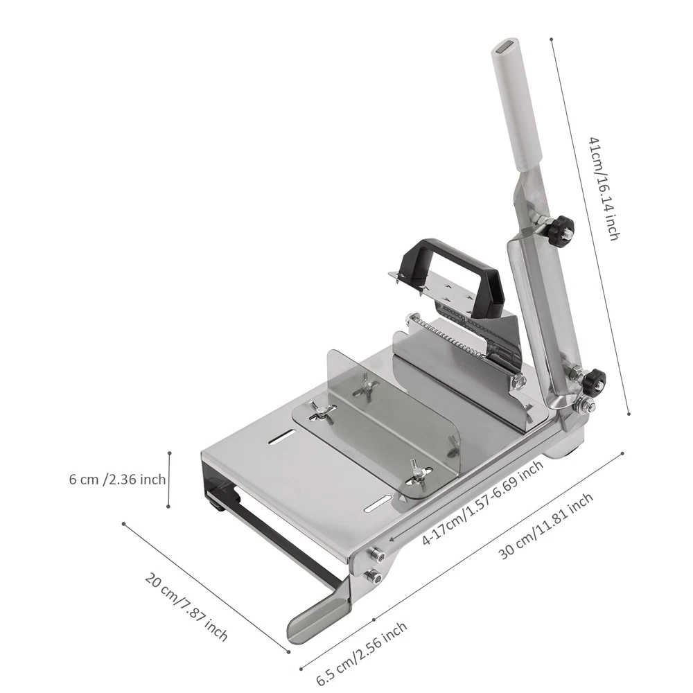 Have a nice day~ Description The efficiency of meat cutting is low, your hands are prone to injury, and the thickness of the meat slices is difficult to control. Look at our manual frozen meat slicer. It is made of 430 stainless steel and aluminum alloy, so it is corrosion-resistant and sturdy. Its simple structure and smooth surface allow for quick installation and cleaning. If you are a hot pot lover and often go to the supermarket to buy sliced meat, you can make frozen meat at home and slice it with this slicer. Key Features Build to Last: The food-grade 430 stainless steel, aluminum alloy, and exquisite polishing process make this product wear-resistant, corrosion-resistant, rust-resistant, and safe to use, so it can withstand the test of time well. Adjustable Thickn ess: According to your wishes or different kinds of food, you can adjust the slice thickness from 0.3-8mm through two screws, allowing you to enjoy more variable meat. High Stability: Extended balance feet(2.56in), four non-slip sponge mats, U-shaped support frame can make it stably placed on the table, helping you to cut meat stable, without turning over, so you can use it confidently. Strong Fixation: Detachable and adjustable fixed brackets(1.57-6.69in) and the fixed splint with sawtooth can help you fix different types of food better and complete the cutting quickly. Compact and Lightweight: The compact size of 14.37*7.78*2.36 inches and the weight of 3.75 lbs allow for easy storage, saving you a lot of space, and you can carry it to different places. Easy Installation: The simple structure and complete installation parts allow you to quickly complete the installation and start to use it. Effortless Cleaning: The smooth surface and simple structure allow you to easily remove dust and residues with a towel and water. Ideal Gift: With good performance, this product can be used as a holiday or housewarming gift for family, friends, and lovers so that they can enjoy a more convenient life. Guaranteed Customer Service: We aim to provide quality products and services. If you have problems, please feel free to contact us. We will reply and solve the problem for you as soon as possible. Details Protective Film: It prevents the product from being scratched during transportation. Round Corners: The arc design can effectively care for your skin compared with the traditional square corners. Practical Spring: It allows for automatic meat delivery, saving effort and improving cutting efficiency. Ergonomic Handle: The extended aluminum alloy handle(16.14in ) is sturdy and durable and allows for a comfortable grip, saving effort and reducing fatigue even in long-term use. Application It can be used to cut carrots, cucumbers, potatoes, rice cakes, lotus roots, frozen meat, fish chunks, ribs, chicken chunks, etc. It is widely used in restaurants and homes. Specification Material: 430 Stainless Steel, Aluminum Alloy Style: Modern Shape: Rectangle Mounting Type: Tabletop Assembly Required: Yes Process: Polishing Number of Items: 1 Color: Silver Extended Balance Feet Length: 6.5cm/2.56in Stand Adjustable Range: 4-17cm/1.57-6.69in Adjustable Slice Thickness: 0.3-8mm/0.012-0.36in Handle Length: 41cm/16.14in Overall Size: 36.5*20*6cm/14.37*7.78*2.36in Package Size: 49*9*20cm/19.29*3.54*7.78in Gross Weight: 2kg/4.41 lbs Net Weight: 1.7kg/3.75 lbs Package Included 1 * Manual Frozen Meat Slicer 1* Chinese Manual All Accessories for Assembly Notes It cannot cut large bones, such as beef ribs, pig's trotters, large ribs, and bones. Please try not to cut hard fruits such as apples, otherwise, the blade will be damaged. It is recommended to wear gloves or a towel (not included)when cutting frozen meat. If the meat is not properly frozen, it would be difficult to achieve a clean cut. You can use a few drops of cooking oil(not included) on the food slicer blades and bearings for simple maintenance. Please do not touch the blade with your hand to test its sharpness. Please do not use hard cleaning tools to avoid scratching the surface. Please dry the water after cleaning and store it in a cool, dry place. Please place it in a place that is not easily accessible to children. Please allow the slight color difference caused by the shooting light and 1-3cm error due to manual measurement, and make sure you do not mind before you place the order. Payment Delivery details Terms of sales About us Contact us Payment We accept ebay payment 。 Fees such as import duties, taxes are not included in the item price or shipping costs. These charges are the buyer's responsibility. Delivery details Shipping: 2-9 working days to: USA Terms of sales We maintain high standards of excellence and strive for hundred percent customer satisfaction. Feedback is very important to us. We hope that you contact us immediately before you give neutral or negative feedback, so that we can address your concerns. It is impossible to address issues if we do not know about them! About us Your satis faction is our ultimate goal. We work hard to earn your trust and future business. Our certified technicians have tested each item before shipping. The unit comes with 1 year limited warranty on all manufacturing defects. a) If you receive a defective item, you may return it or ask for a discount. Please contact us within 14 days after you receive the package. b) What you returned must be intact and in its original packaging as re? u. Customer is responsible for shipping costs of the returned item. c) We will cover the cost of shipping back t with the shipping rate indicated in the registration page. We will send you a new unit or refund the full payment you paid. Thank you. Contact us Business Hour Business Hour: Monday To Friday: 8:30 AM to 5:00 PM (Beijing China time) Due to time zones, our reply to your questions may not be immediately. But within above working time, we will reply your email within 24 hours. If it's non-workdays, please kindly be patient and wait till Monday. Please con