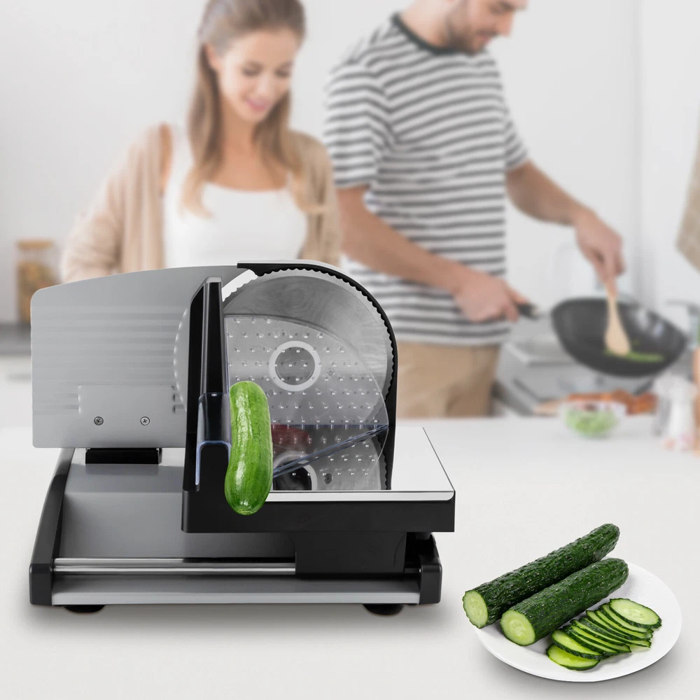 Specification Voltage: 110v Power: 200w Material: 304 Stainless Steel Color: Silver Section Size: Adjustable Control Blade Shape: Round and Serrated Operation Mode: Automatic Blade Diameter: 19cm/7.48in Speed: 90 Rpm Slice Thickness: 0-1.5cm/0-0.591in Package Included 1*Stainless Steel Meat Slicer(with Power Cord) Stainless Steel Meat Slicer Bread Slicing Machine Fruit Cutter Meat Slicer 200w Specification Voltage: 110v Power: 200w Material: 304 Stainless Steel Color: Silver Section Size: Adjustable Control Blade Shape: Round and Serrated Operation Mode: Automatic Blade Diameter: 19cm/7.48in Speed: 90 Rpm Slice Thickness: 0-1.5cm/0-0.591in Package Included 1*Stainless Steel Meat Slicer(with Power Cord) Key Features High Durability: This Meat Slicer Is Made of 304 Stainless Steel That Has Good Corrosion and Rust Resistance so It Is More Durable and Has a Long Service Life. Healthy and Hygienic : This Slicer Is Made of Food-grade Stainless Steel, so You Can Cut Food with It Without Worry. Cut Your Own Meat at Home Which Is Money-saving and Hygienic. High Efficiency: with a Power of 200w and a Speed of 90 Revolutions per Minute, This Item Can Work at High Efficiency. Good Heat Dissipation: with a Convex Design, the Heat Dissipation Space of the Meat Slicer Is Increased, and the Multiple Vents Dissipate Heat Effectively. the Good Heat Dissipation Greatly Extends the Life of the Machine. Adjustable Thickness: the Slice Thickness of the Slicer Is Adjustable Ranging from 0 to 1.5cm, You Can Adjust It According to Your Own Needs, Facilitating Your Daily Use. Stable Performance: This Slicer Has a Belt Drive That Is Very Hard-wearing, and Non-slip Thus Ensuring Good Working Stability. Easy Operation: You Just Need to Put the Food on the Carrying Table, Then Adjust the Thickness Knob, Choose the Thickness You Want, Unlock the Child Lock While Pressing the Blade Switch, and Finally Push the Food to the Blade. Compact Design : with a Sleek, Compact Lightweight Design, This Slicer Is Small Enough for Most Cabinets and Countertops. Easy to Clean: with a Detachable Design, This Item Is Easier to Be Cleaned, Meanwhile It Has a Smooth Surface and Fewer Gaps, Saving Your Cleaning Time. Details Safety Child Lock: Child Lock Prevents Children from Operating the Machine by Mistake Due to Curiosity, Effectively Improving Safety. Bottom Suction Cup: the Bottom Suction Cup Effectively Improves Stability During Operation. Plastic Pusher: When Cutting Food of Short Lengths, You Can Use the Pusher to Prevent Cutting Your Hands, Which Improves Safety. Application This Meat Slicer Can Be Used on Wide Occasions Not Only for Slicing Meat but Also for Slicing Bread, Fruit, Cucumbers, Potatoes, Etc. Notes Please Allow the Slight Color Difference Caused by the Shooting Light and 1-3cm Error Due to Manual Measurement, and Make Sure You Do Not Mind Before Ordering. Payment Delivery details Terms of sales About us Contact us Payment We accept ebay payment 。 Fees such as import duties, taxes are not included in the item price or shipping costs. These charges are the buyer's responsibility. Delivery details Shipping: 2-9 working days to: USA Terms of sales We maintain high standards of excellence and strive for hundred percent customer satisfaction. Feedback is very important to us. We hope that you contact us immediately before you give neutral or negative feedback, so that we can address your concerns. It is impossible to address issues if we do not know about them! About us Your satis faction is our ultimate goal. We work hard to earn your trust and future business. Our certified technicians have tested each item before shipping. The unit comes with 1 year limited warranty on all manufacturing defects. a) If you receive a defective item, you may return it or ask for a discount. Please contact us within 14 days after you receive the package. b) What you returned must be intact and in its original packaging as re? u. Customer is responsible for shipping costs of the returned item. c) We will cover the cost of shipping back t with the shipping rate indicated in the registration page. We will send you a new unit or refund the full payment you paid. Thank you. Contact us Business Hour Business Hour: Monday To Friday: 8:30 AM to 5:00 PM (Beijing China time) Due to time zones, our reply to your questions may not be immediately. But within above working time, we will reply your email within 24 hours. If it's non-workdays, please kindly be patient and wait till Monday. Please contact us with ebay message. Please feel free to contact us if you have any questions. Monday To Friday: 8:30 AM to 5:00 PM (Beijing China time) Due to time zones, our reply to your questions may not be immediately. But within above working time, we will reply your email within 24 hours. If it's non-workdays, please kindly be patient and wait till Monday. Please contact us with ebay message. Please feel free to contact us if you have any questions.