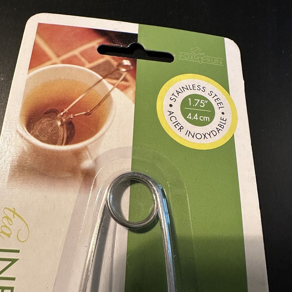 Fox Run Stainless Steel Snap Mesh Ball Tea Infuser Loose Leaf Filter Strainer w/ Handle At the time of listing this, I am selling multiple quantities of these. One of the packages has a slight rip in the cardboard. I’m assuming you’re not buying this for the cardboard so if this is an issue, please let me know before buying. If you would like to see a photograph of it just message me and I will get that for you. The stainless steel infuser is still secured in the package. The package is the only thing that was torn.