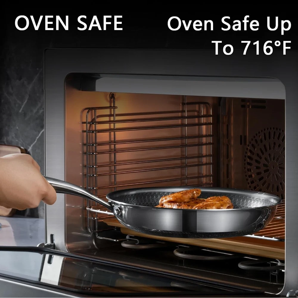 Stainless Steel Pan, Nonstick Frying 12.4inch PFOA-Free, 12.4inch, Black Product Details Brand: XINGMENGXIANG Material: Stainless Steel Special Feature: Non Stick, Gas Stovetop Compatible, Electric Stovetop Compatible, Detachable Handle Color: Black Capacity: 3.5 Liters Compatible Devices: Smooth Surface Induction, Gas, Electric Coil Product Care Instructions: Hand Wash Only Is Oven Safe: Yes Model Name: Non-Stick Frying Pan Has Nonstick Coating: Yes Manufacture Year: 2025 Product Dimensions: 8.7 x 12.4 x 2.16 inches Item Weight: 3.83 pounds Manufacturer: XINGMENGXIANG Country of Origin: China Item model number: FP-4 NON-STICK SECRET: Our stainless steel non-stick cookware is made by laser etching technology to carve honeycomb hexagonal shapes on the surface of the stainless steel, which creates a physical non-stick surface. Delicious secret: Multi-layer composite steel effectively solves the cooking conduction problem of pure steel, which makes the heat transfer of frying, baking, stir-frying, stewing and other cooking methods faster and more uniform, so that your delicacies will be more delicious and savory. The secret of simplicity: thanks to the physical non-stick technology, there is no coating, and you can use spatulas and cleaning brushes made of any material, which is easier to use and lasts longer. Healthy secret; the healthy surface has no coating and is completely non-toxic, the same as Blue Diamond ceramic or cast iron pans, which won't affect your and your family's health. Practical secret; Our stainless steel wok is suitable for gas cooktops, induction cooktops, glass ovens and halogen ovens.