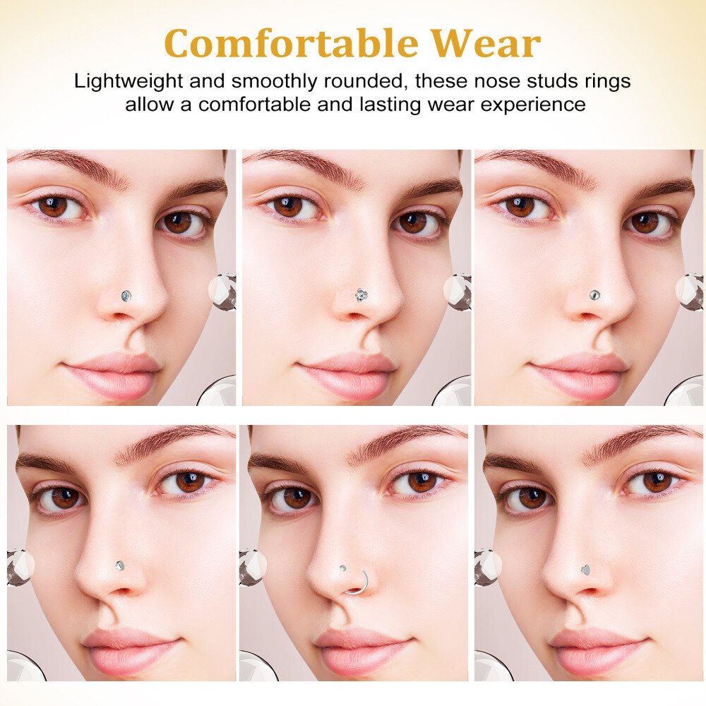 Absolutely love these nose studs! They're comfortable, stylish, and the stainless steel feels high-quality. Perfect for everyday wear or switching up your look. The secure fit keeps them in place, and they don’t irritate my sensitive skin. Great value for a set—definitely recommend!