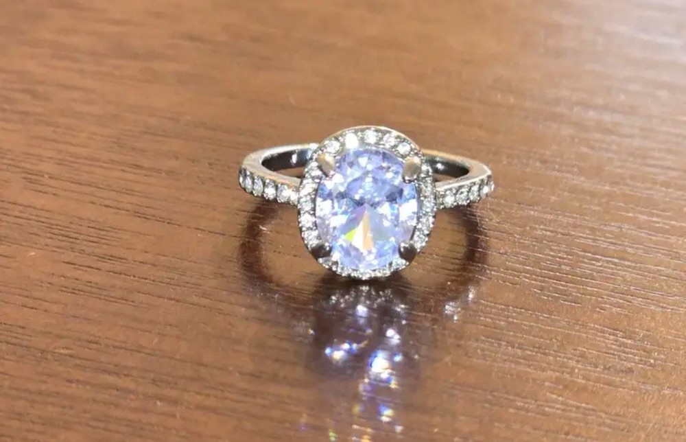 This stainless steel ladies ring features an oval rhinestone with excellent cut grade, set in a solitaire with accents style. The elegant design is perfect for engagements, weddings, or anniversaries. The ring is silver in color, with a band width of 5mm and a ring size of 7. It is a great gift option for women, crafted for women with nice quality materials.