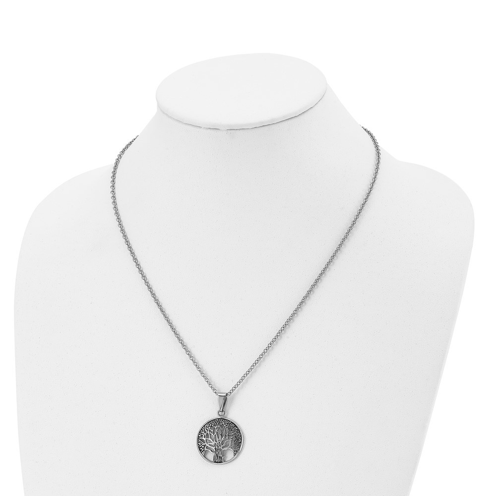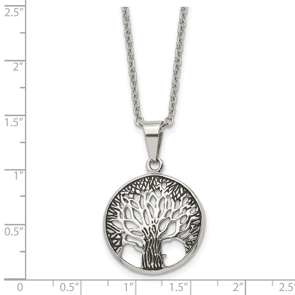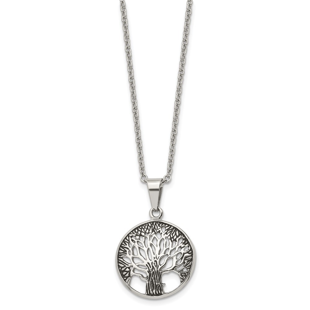 Stainless Steel Polished Tree of Life Pendant Cable Chain Necklace 20" 8.18gm