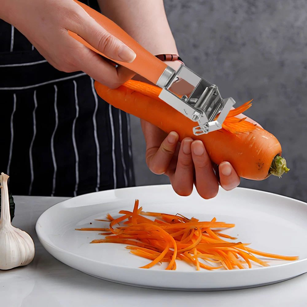 Bullet Points: Adjustable Slicer: The carrot cutter's adjustable slicing thickness enables you to slice effortlessly at the perfect thickness based on your preference, making cooking a breeze Made to Last: Expertly crafted with stainless steel, this carrot cutter is built to last and withstand heavy use. Its strong construction provides the utmost durability without any risk of breaking or deformation, ensuring you often have a dependable kitchen tool at your disposal Extensive Use: Simplify your vegetable prep with this innovative carrot cutter. Peel potatoes, fruit & veggies with ease, and grate/shred cucumber, radish & more Convenient for Being Carried: With its hangable hole and compact size, this portable carrot cutter is perfect for storing in small spaces. Take it with you on outdoor adventures and travels Easy Cleaning: Prepare carrots effortlessly with this carrot cutter. Cleaning is easy and can be done by rinsing with water or placing it in the dishwasher This adjustable grater is not easy to break or deform, making it perfect for various outdoor activities. Peel, grate, and shred with ease. Clean-up is a breeze; simply rinse with water. Product name: carrot cutter Product size: about 19.3x3cm/7.6x1.18 inches Material: Stainless steel Packing List: 1* Vegetable Slicer
