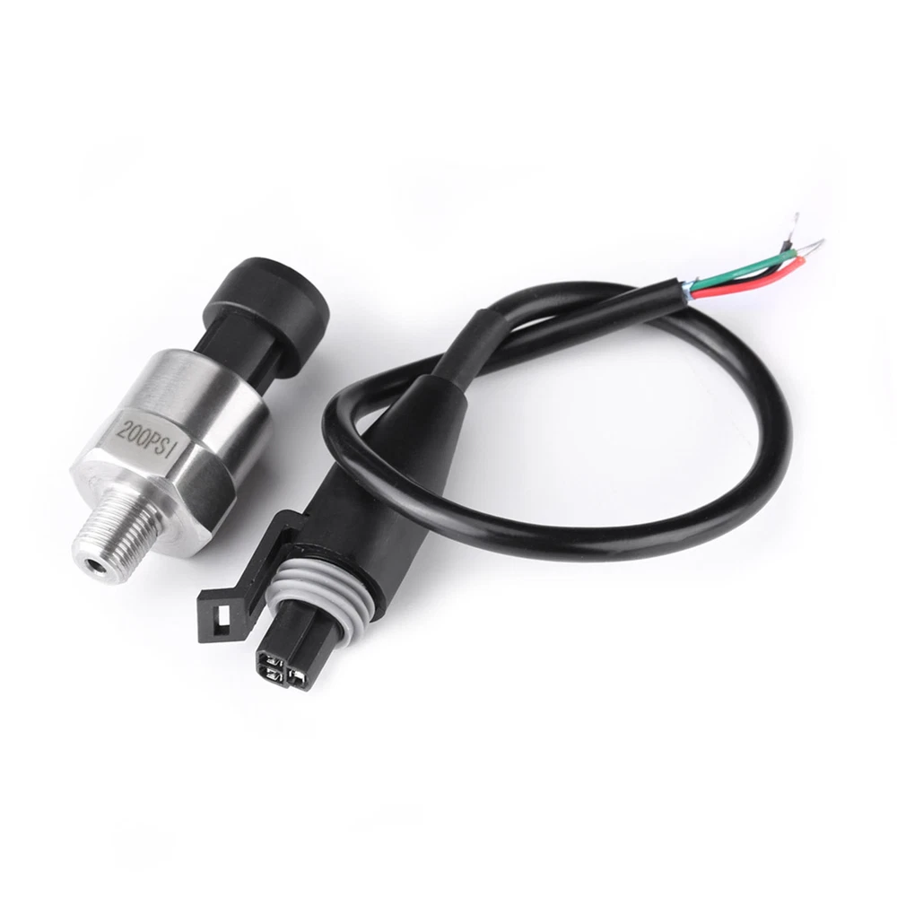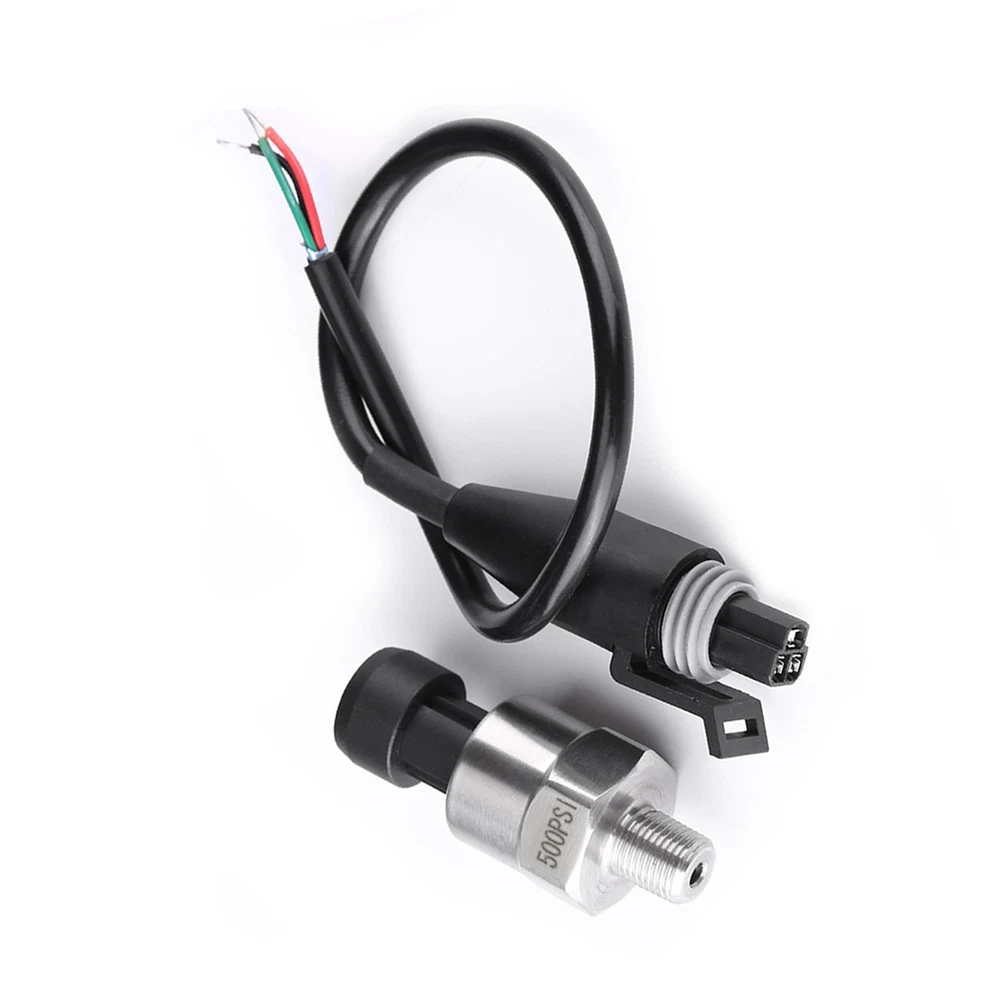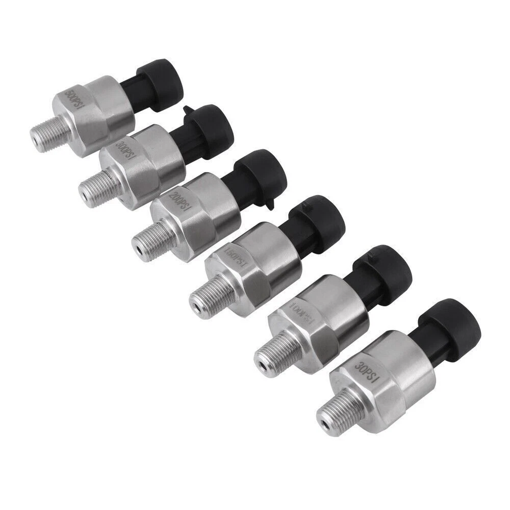 Feature: 1. It's an advance pressure transducer than traditional mechanical pressure transducer 2. ±2%FS small output error, including nonlinear, hysteresis error and repeatability, full temperature range 3. Light weight and small size, convenient to install and operate 4. It has complete surge voltage protection function 5. Works for oil, fuel, diesel, gas, water, air pressure, can be used in oil tank, gas tank, diesel tank etc Specification: Features: It's an advance pressure transducer than traditional mechanical pressure transducer. ±2%FS small output error, including nonlinear, hysteresis error and repeatability, full temperature range. Light weight and small size, convenient to install and operate. Works for oil, fuel, diesel, gas, water, air pressure, can be used in oil tank, gas tank, diesel tank etc. Specifications: Material: Stainless steel Thread Type: 1/8" NPT 30 psi Input: 0-30 psi Accuracy: within 2% of reading (full scale). Thread: 1/8"-27 NPT. Wiring Connector: Water sealed quick disconnect. Mating connector is included. Wiring: Red for +5V; Black for ground; Blue for signal output. 100 psi Input: 0-100 psi Accuracy: within 2% of reading (full scale). Thread: 1/8"-27 NPT Wiring Connector: Water sealed quick disconnect. Mating connector and wire harness (pigtail) is included. Wiring: Red for +5V; Black for ground; Blue for signal output. 150 psi Input: 0-150 psi Accuracy: +/-0.5%FS Thread: 1/8" NPT Wiring: Red for +5V; Black for ground; Green for signal output Overload Capacity: 2-4 times of rated pressure Working Temperature: -40℃~+120℃ Compensation Temperature: 0℃~+80℃ Protection Class: IP67 Pressure Medium: Oil, gas and water which is compatible with 316L stainless steel Load Resistance: ≤(supply power-6.5V/0.02A)Ω Long-term Stability: Less than 0.1%FS/year Temperature Effect on Zero: Typical:0.02%FS/℃; Maximum:0.05%FS/℃ Temperature Effect on Sensitivity: Typical: 0.02%FS/℃; Maximum: 0.05%FS/℃ Shock Resistance: 1000g Anti-Shock: ≤+/-0.01%FS(X,Y,Z axes, 200Hz/g) Response Time: ≤1ms Insulation Resistance: >100mΩ 500VDC Explosion-proof Class: ExiaTTCT6 Electromagnetism Compatibility: EN50051-1 200 psi Input: 0-200 psi Working Temperature: -40~+125℃ Accuracy: ±1%FS Thread: 1/8"-27 NPT Overload Capacity: 2 times of rated pressure Pressure Medium: Oil, gas and water which is compatible with 316L stainless steel Load Resistance: ≤(supply power-6.5V/0.02A)Ω Long-term Stability: ± 0.2%FS/year Temperature Effect on Zero: Typical: ±0.02%FS/℃; Maximum: ±0.05%FS/℃ Temperature Effect on Sensitivity: Typical: ±0.02%FS/℃; Maximum: ±0.05%FS/℃ Shock Resistance: 100g Anti-Shock: ≤±0.01%FS(X,Y,Z axes, 200Hz/g) Response Time: ≤1ms Insulation Resistance: >100mΩ 500VDC Explosion-proof Class: ExiaTTCT6 Electromagnetism Compatibility: EN50081-1; EN50082-2; IEC6 1000-4-3 Wiring Connector: Water sealed quick disconnect. Mating connector and wire harness (pigtail) is included. Wiring: Red for IN+; Black for GND; Green for OUT. 300 psi Input: 0-300 psi Accuracy: +/-0.5%FS Thread: 1/8" NPT Wiring: Red: +5V; Black: ground; Green: signal output Overload Capacity: 2-4 times of rated pressure Working Temperature: -40~+120℃ Compensation Temperature: 0℃~+80℃ Protection Class: IP67 Pressure Medium: Oil, gas and water which is compatible with 316L stainless steel Load Resistance: ≤ (supply power-6.5V/0.02A)Ω Long-term stability: Less than 0.1%FS/year Temperature Effect on Zero: Typical: 0.02%FS/℃; Maximum: 0.05%FS/℃ Temperature Effect on Sensitivity: Typical:0.02%FS/℃; Maximum:0.05%FS/℃ Shock Resistance: 1000g Anti-Shock: ≤+/-0.01%FS(X,Y,Z axes, 200Hz/g) Response Time: ≤1ms Insulation Resistance: >100mΩ 500VDC Explosion-proof Class: ExiaTTCT6 Electromagnetism Compatibility: EN50051-1. 500 psi Input: 0-500 psi (Gauge Pressure) Accuracy: +/-1%FS Thread: 1/8" NPT Wiring: Red for +5V; Black for ground; Yellow (Green) for signal output Overload Capacity: 2-4 times of rated pressure Working Temperature: -40℃~+120℃ Compensation Temperature: 0℃~+80℃ Protection Class: IP67 Pressure Medium: Oil, gas and water which is compatible with 316L stainless steel Load Resistance: ≤ (supply power-6.5V/0.02A)Ω Long-term stability: Less than 0.1%FS/year Temperature Effect on Zero: Typical: 0.02%FS/℃; Maximum: 0.05%FS/℃ Temperature Effect on Sensitivity: Typical: 0.02%FS/℃; Maximum:0.05%FS/℃ Shock Resistance: 1000g Anti-Shock: ≤+/-0.01%FS(X,Y,Z axes, 200Hz/g) Response Time: ≤1ms Insulation Resistance: >100mΩ 500VDC Explosion-proof Class: ExiaTTCT6 Electromagnetism Compatibility: EN50051-1. Package Includes: 1 x Pressure Transducer (With cable)