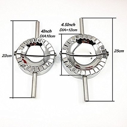 Lay a sheet of dough or pasta over the Dumpling Maker, add your favorite filling, then flip up to cut, seal and crimp the edges, creating a perfect little packet pie in seconds! Ideal for ravioli, pie,pierogi, dumplings, turnovers, pot sticker,mini spinach pies, bite-size calzones and more. Specification: ★ Material: 18/10 Stainless Steel ★ Package: 1* Long handle Ravioli mold M 4inch ★ Dimensions:10"(L) x 5(W) x 1.5"(H) ( Including the two long handles) ★ Product Weight: 7.7 ounces ★ Shipping Weight:9.5 ounces Description: ★ Use fresh pasta dough and your favorite fillings to create homemade raviolis, pierogies, and dumplings with this simple half-circle ravioli mold. Made of 18/10 stainless steel, this mold maker will have you moving quickly through batch after batch. ★ With the Sharp edge outside could be cut the suitable size dough piece easily. Put the dough on the upper side, then you can add your favourite filling and close the ravioli molds,lightly press down the crimped edge to seal the dough tight.better brush the rim with egg yolk for safe closing. ★ Crafted of the finest 18/10 stainless steel that's dishwasher safe. ★ Perfect long handles easy to hold and press. ★ One-year guarantee for noncommercial use.