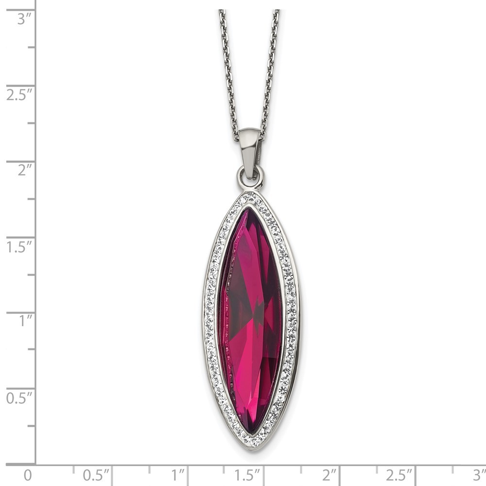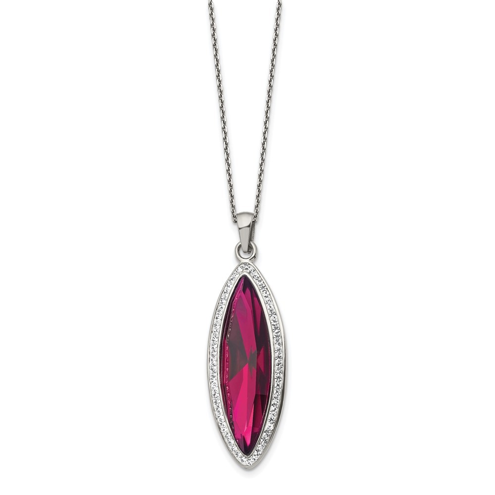 Finish:Polished|Stone Type_1:Crystal|Stone Type_2:Crystal|Stone Color_1:Red|Stone Color_2:White|Stone Quantity_1:1|Length of Item:20 in|Chain Length:20 in|Chain Type:Cable|Chain Width:1.4 mm|Charm/Element Length:41.6 mm|Charm/Element Width:16.1 mm|Clasp /Connector:Lobster (Fancy)|Extender Length:2 in|Material: Primary:Stainless Steel|Stone Shape_1:Marquise|Stone Shape_2:Round|Stone Treatment_1:Synthetic|Stone Treatment_2:Synthetic|Width of Item:16.1 mm|Packaging:Gift Boxed|Product Type:Jewelry|Jewelry Type:Necklaces|Sold By Unit:Each|Necklace Type:Necklace with Pendants|Pendant/Charm Type:Fancy|Gender:Women's|Bail Width:3.8 mm|Material: Primary - Color:White|Bail Length:8.4 mm|Stone Creation Method_1:Synthetic|Stone Creation Method_2:Synthetic All weights and measurements are approximate and may vary slightly from the listed information. Welcome to diamond_6720 Payments We accept all Ebay approved payment. Please sent the payment to us within 8 days after the auction has ended, or you will have unpaid case auto open by eBay. Shipping Policy We will ship all items within 1 business days of purchase during the work week (M-F) excluding holidays. If you order on Friday, your order will be shipped the following business day. Tracking will be provided when it becomes available. We will only ship to a PayPal Verified Address. Please make sure your address is current and correct. If the information does not match, your order may be canceled. Buyers are responsible for all customs, duties and taxes for your respective countries. Delivery times for International Shipping will vary. California Buyers Pay 9.0% Tax on all orders. case auto open by eBay. Return Policy & Exchange Returns or Exchange are accepted. Buyer must contact us within 30 days after the item is received. Item must be returned in unworn and resalable condition. We will only issue a refund for the purchase price, excluding any shipping fees. If we are at fault, we will provide a full refund. Buyer is responsible for all return shipping costs. BUYERS FEEDBACK If you have any concerns regarding your purchase, please contact us via eBay Message, we assure you that a satisfactory resolution will be reached. Your feedback is very important to us Do remember to give us 5 star rating(*****) if you are satisfied with our product & service .