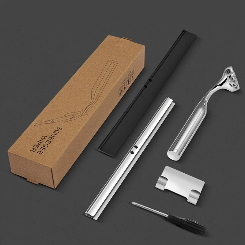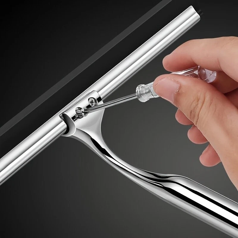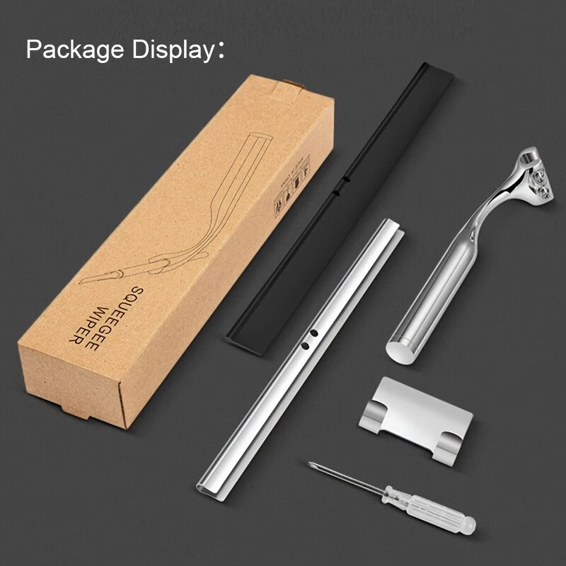 Window and Shower Squeegee Cleaner - The Length of the handle is about 6.5-inch . Silicone material blade Lenght: 10 inch. Premium Material - Made of high quality stainless steel and alloy of zinc, dust-resistant and durable.This bathroom squeegee adopts a soft and flexible silicone material blade . Modern Design: The elegant shape of the glass scraper over stainless steel sports a slim profile that looks cool. The package would contain the screwdriver, it helps to assemble this squeegee. Easy installation - No drill Adhesive Hooks. Tear off the adhesive backing and press the hook firmly onto a clean, dry, and smooth wall surface. You could store the shower squeegee on the hook. Multiple Application - Can clean tiles, shower doors, mirrors, windows, car glasses, tabletops, hand washing sinks, and house windows. It efficiently removes water spots, soap bubble, and other dirt. On Sep 20, 2024 at 23:37:20 PDT, seller added the following information: On Sep 23, 2024 at 07:51:56 PDT, seller added the following information: