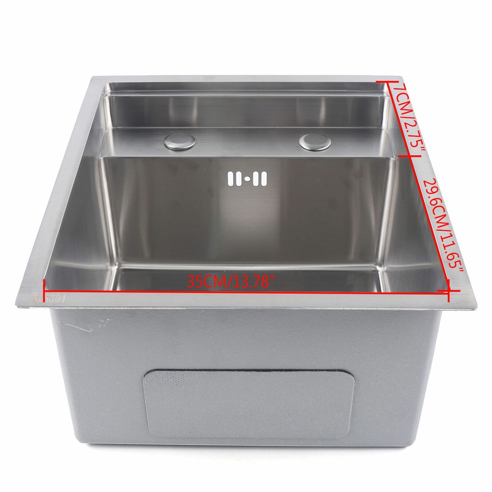 Hidden Kitchen sink Single bowl Bar Small Size sink Stainless Steel Features: Wear-resistant and scratch-resistant Multifunctional drain basket, double-layer edging, more convenient to use Easy to install and easy to clean Specifications: Features: With faucet Sink style: single bowl Material: Stainless steel Bowl Shape: Square Surface Treatment: Brushed Bowl size:35*29.6*23cm/13.78*29.6*9.06inch Cover size:38.8*34.8cm/15.28*13.7inch Over size:49*39cm/16.92*15.35inch Package: 1*sink 1*Folding faucet 1*Drain pipe 1*Cover 1*Strainer Hidden Stainless Steel Kitchen Sink Single Bowl w/ Drain Folding faucet Strainer Hidden Kitchen Sink Single Bowl bar Small Size Sink Stainless Steel Features: Wear-resistant and Scratch-resistant Multifunctional Drain Basket, Double-layer Edging, More Convenient to Use Easy to Install and Easy to Clean Specifications: Features: with Faucet Sink Style: Single Bowl Material: Stainless Steel Bowl Shape: Square Surface Treatment: Brushed Bowl Size:35*29.6*23cm/13.78*29.6*9.06inch Cover Size:38.8*34.8cm/15.28*13.7inch Over Size:49*39cm/16.92*15.35inch Package: 1*Sink 1*Folding Faucet 1*Drain Pipe 1*Cover 1*Strainer Payment Delivery details Terms of sales About us Contact us Payment We accept ebay payment 。 Fees such as import duties, taxes are not included in the item price or shipping costs. These charges are the buyer's responsibility. Delivery details Shipping: 2-9 working days to: USA Terms of sales We maintain high standards of excellence and strive for hundred percent customer satisfaction. Feedback is very important to us. We hope that you contact us immediately before you give neutral or negative feedback, so that we can address your concerns. It is impossible to address issues if we do not know about them! About us Your satis faction is our ultimate goal. We work hard to earn your trust and future business. Our certified technicians have tested each item before shipping. The unit comes with 1 year limited warranty on all manufacturing defects. a) If you receive a defective item, you may return it or ask for a discount. Please contact us within 14 days after you receive the package. b) What you returned must be intact and in its original packaging as re? u. Customer is responsible for shipping costs of the returned item. c) We will cover the cost of shipping back t with the shipping rate indicated in the registration page. We will send you a new unit or refund the full payment you paid. Thank you. Contact us Business Hour Business Hour: Monday To Friday: 8:30 AM to 5:00 PM (Beijing China time) Due to time zones, our reply to your questions may not be immediately. But within above working time, we will reply your email within 24 hours. If it's non-workdays, please kindly be patient and wait till Monday. Please contact us with ebay message. Please feel free to contact us if you have any questions. Monday To Friday: 8:30 AM to 5:00 PM (Beijing China time) Due to time zones, our reply to your questions may not be immediately. But within above working time, we will reply your email within 24 hours. If it's non-workdays, please kindly be patient and wait till Monday. Please contact us with ebay message. Please feel free to contact us if you have any questions.