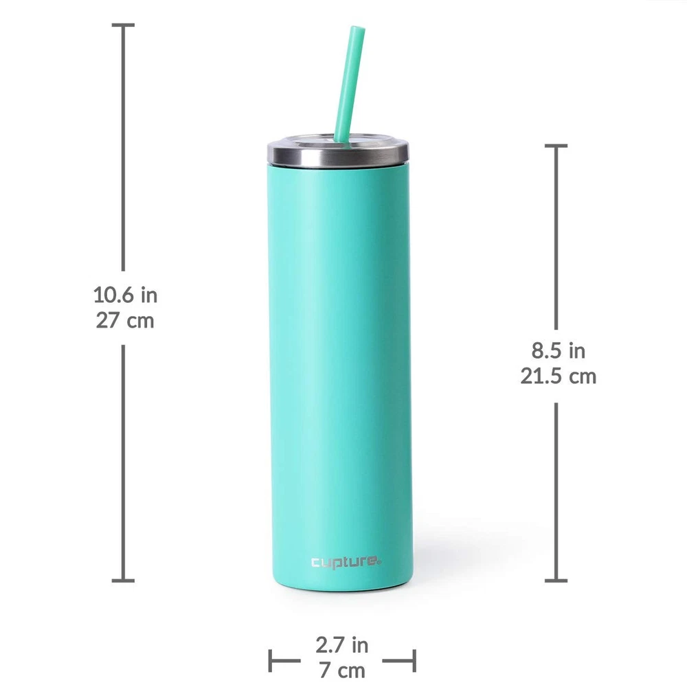 The exquisite 16 ounce Double Wall Skinny Cups by showcase a modern yet timeless design that's sure to turn heads. The slender cylindrical shape is not only easy to grasp and comfortable to hold, but also lightweight and travel-ready. With food 18/8 stainless steel, they are resilient for everyday use and ensure that you savor every sip of your beverage's crisp refreshing flavor. Along with 8 vibrant color options, it also comes with durable straws and secure screw-on lids with rubber gasket to keep your beverages from leaking or spilling. These double wall tumblers will help keep any "hot" or "cold" beverage at the right temperature. These tumblers hold up to 16 ounces of liquid storage which is often considered the perfect portion. BPA free - 18/8 Food stainless steel with luxurious matte coating Fits most car cup holders - have your favorite beverages on the go Sweat free - Vacuum Insulated double wall to keep drinks cold for longer Slim and ergonomic design with easy grip | Hand wash recommended Reusable thick straw included