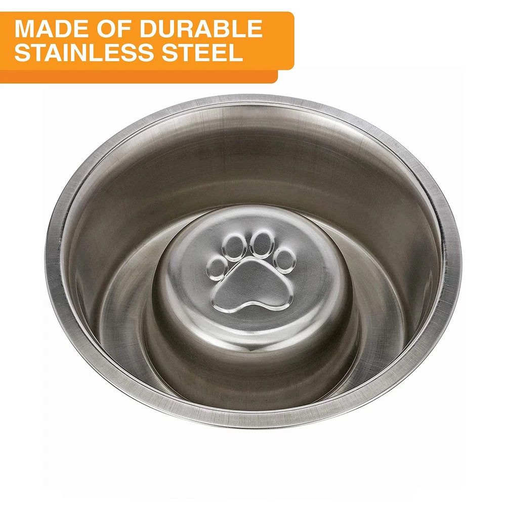 Introducing our Slow Feeder Dog Bowls, designed specifically for large breeds, featuring a stainless steel construction that ensures durability and hygiene; these slow feeder dog bowls come with a unique maze dog food bowl insert that transforms mealtime into an engaging dog puzzle bowl experience, promoting healthier eating habits and preventing bloating, making them the perfect choice for your small dog slow feeder bowl needs. FITS INSIDE SELECT NEATER FEEDERS: 3-cup stainless steel slow feed bowl fits in the Neater Feeder Deluxe Large and the Neater Feeder Express Medium to Large. It will also fit inside other raised feeders with a bowl opening between 7.25" – 8”. DOES NOT FIT INSIDE ANY OTHER SIZE NEATER FEEDER DELUXE OR EXPRESS. SLOWS DOWN RAPID EATERS: Eating too quickly can lead to indigestion, vomiting, bloat, and overeating. A slow feed food bowl helps prevent your pet from the dreaded “scarf and barf.” JUST CHALLENGING ENOUGH: Ever look at a slow feeder and think, how in the world will my cat or dog get the food out of that? The idea is to slow your pet’s eating down, not to create unnecessary frustration. Our slow feed bowl is designed to slow them down without driving them crazy. PROVIDES MENTAL ENRICHMENT: Puzzle bowls provide a challenge to your pet, which helps provide mental stimulation and reduce boredom. 3 CUP CAPACITY: Slow-feed dog bowl holds up to 3 cups of wet or dry food—measures 8.25” in Diameter and 2.75" High. We recommend this size for medium to large dog breeds.