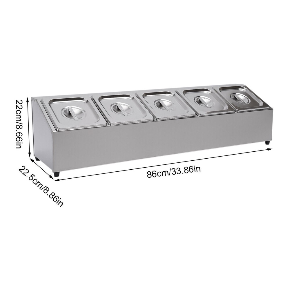 Spice Rack Shelf Inclined Seasoning Organizer Holder Stainless Steel Five Pans Discription The Stringing of Flavors Often Makes People Feel Very Distressed but Our Product Provides a Good Help. Made of Safe and Durable 201 Stainless Steel, This Product Is Equipped with 5 Food Containers with a Large Capacity, so You Can Organize the Countertop Well and Keep Your Kitchen Neat and Tidy. Besides, the Simple Structure Makes It Hassle-free to Detach and Clean, and It Is Sure to Be Your Reliable Kitchen Helper. Specification Color: Slivery Material: 201 Stainless Steel Surface Treatment: Electrolysis and Welding Number of Container: 5 Capacity of Each Container: About 2l/0.53gal Net Weight : 4.3kg/9.48lbs Gross Weight : 4.8kg/10.6lbs Product Size :86*22.5*22cm/33.86*8.86*8.66 Inch Package Size: 84*24*22.5cm/33.07*9.45*8.86inch Key Features High-quality Material: the Product Is Made of 201 Stainless Steel, Which Is Durable, and Rustproof , so It Has a Long Service Life. Exquisite Technology: the Product Adopts Electrolysis and Welding Technology to Make the Product Brighter, Smoother, More Textured, and More Robust. Elaborate Design: the Product Features a Hollow Design Under the Basin, Which Is Not Easy to Collect Dust, and Is Conducive to Maintaining the Cleanliness of the Product. at the Same Time, the Product Is Inclined, Which Is More Convenient for You to Place and Take out Food. in Addition, the 5 Containers Are Separated, Without Stringing of Flavors . Ready to Use: This Product Can Be Used Without Installation, You Can Use It Once You Get It. Large Capacity: the Product Is Equipped with 5 Food Containers and the Capacity of Each Container of This Product Is About 2l/0.53gal, Which Can Place Enough Food to Fully Meet Your Daily Needs. Beautiful Appearance: the Product Is Silvery, and the Surface Is Smooth. with Smooth Lines, It Has a Sense of Modernity and Fashion, Which Makes the Product More Attractive. Easy to Clean: the Surface of the Product Is Very Smooth, at the Same Time, the Container Can Be Easily Taken out, so You Can Not Only Put It in the Refrigerator to Keep the Food Fresh but Also Easily Clean It with Water or Put It into the Dishwasher After Use. Worry-free Service: We Have Been Working Hard to Provide Better Service and Quality for Our Customers, Which Is Our Goal. If There Is Any Quality Problem with Our Products. Please Contact Us in Time. Details Lid: There Is a Handle on the Lid of the Pan, Which Is Convenient for You to Take. at the Same Time, the Lid Can Prevent Dust and Ensure the Cleanness of Food. Anti-slip Rubber Feet: the Product Is Equipped with Four Anti-slip Rubber Feet to Make the Product More Stable and Reduce Bumps During Operation, Besides, It Can Protect the Countertop from Scratches. Arc Design: the Four Outward Extending Corners of the Container Are Arc-shaped, Which Can Better Protect Your Hands and Avoid Scratches Compared with the Traditional Square Design. Application This Product Can Be Widely Used in Restaurants, Hot Pot Shops, Milk Tea Shops, Fruit Shops, and Other Places to Place All Kinds of Food and Spices. Package Included 1*Spice Rack Shelf 5* Food Containers 5* Lids Notes Please Keep Dry After Cleaning. Please Allow the Slight Color Difference Caused by the Shooting Light and 1-3cm Error Due to Manual Measurement, and Make Sure You Do Not Mind Before Ordering. Payment Delivery details Terms of sales About us Contact us Payment We accept ebay payment 。 Fees such as import duties, taxes are not included in the item price or shipping costs. These charges are the buyer's responsibility. Delivery details Shipping: 2-9 working days to: USA Terms of sales We maintain high standards of excellence and strive for hundred percent customer satisfaction. Feedback is very important to us. We hope that you contact us immediately before you give neutral or negative feedback, so that we can address your concerns. It is impossible to address issues if we do not know about them! About us Your satis faction is our ultimate goal. We work hard to earn your trust and future business. Our certified technicians have tested each item before shipping. The unit comes with 1 year limited warranty on all manufacturing defects. a) If you receive a defective item, you may return it or ask for a discount. Please contact us within 14 days after you receive the package. b) What you returned must be intact and in its original packaging as re? u. Customer is responsible for shipping costs of the returned item. c) We will cover the cost of shipping back t with the shipping rate indicated in the registration page. We will send you a new unit or refund the full payment you paid. Thank you. Contact us Business Hour Business Hour: Monday To Friday: 8:30 AM to 5:00 PM (Beijing China time) Due to time zones, our reply to your questions may not be immediately. But within above working time, we will reply your email within 24 hours. If it's non-workdays, please kindly be patient and wait till Monday. Please contact us with ebay message. Please feel free to contact us if you have any questions. Monday To Friday: 8:30 AM to 5:00 PM (Beijing China time) Due to time zones, our reply to your questions may not be immediately. But within above working time, we will reply your email within 24 hours. If it's non-workdays, please kindly be patient and wait till Monday. Please contact us with ebay message. Please feel free to contact us if you have any questions. Warranty 5 years Features ★Nice and Practical, High Quality Packaging★ Manufacturer Warranty 3 Years Shipping Notice Can't not Ship to Puerto Rico,Alaska/Hawaii Item Location CA /NJ /Austell Item Height 8.66 inch Item Length 33.86 inch Item Width 8.86 inch Type Stainless Frame Material 201 Stainless Steel Number of Compartments 5 Mounting Free Standing Color Silver Bundle Description N/A Custom Bundle No MPN Does not apply Number of Container 5 Capacity of Each Container About 2L/0.53gal Item Weight 4.3kg/9.48lbs Brand Unbrande