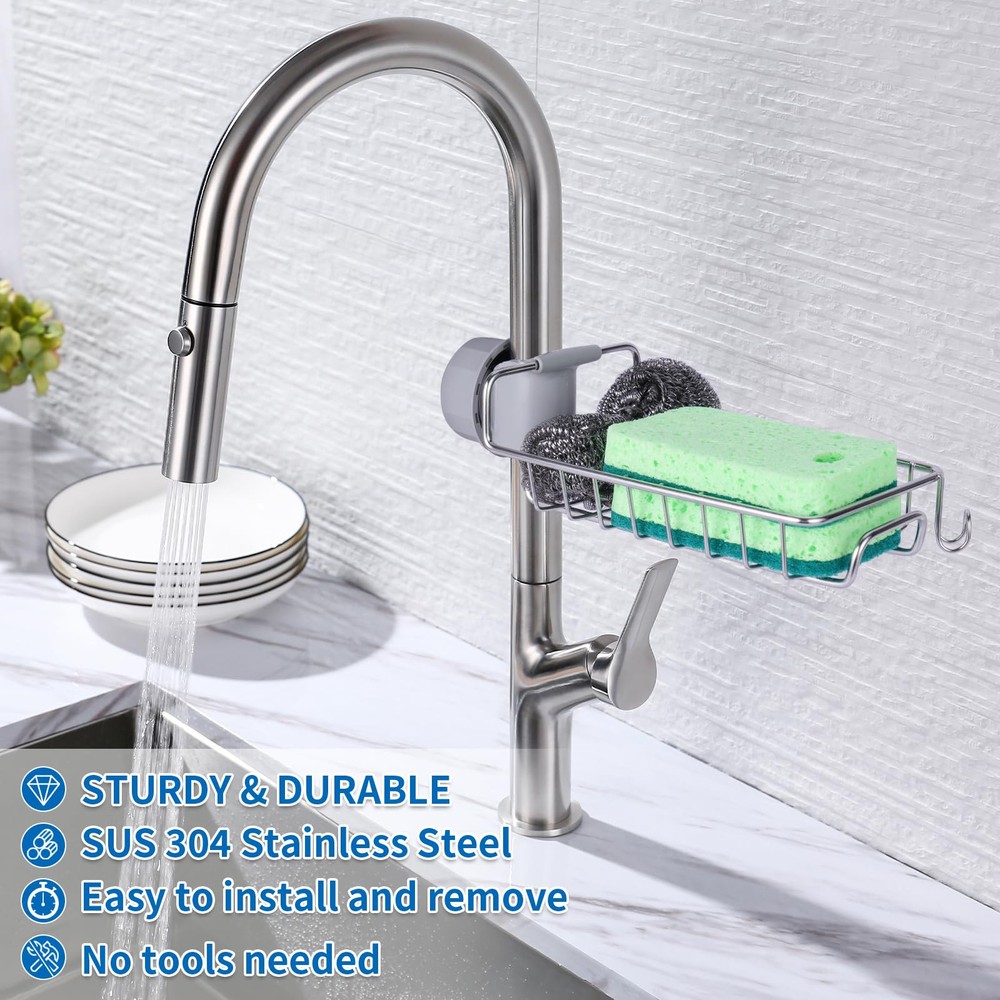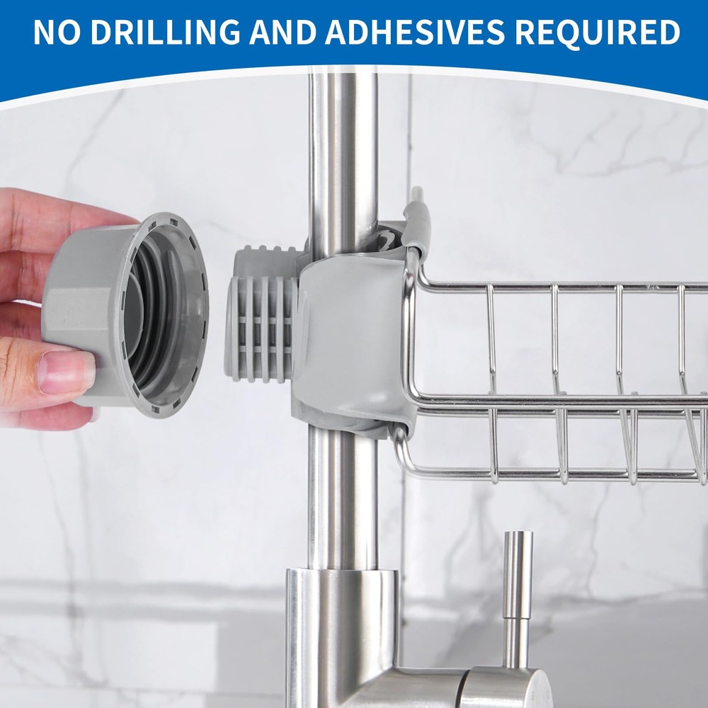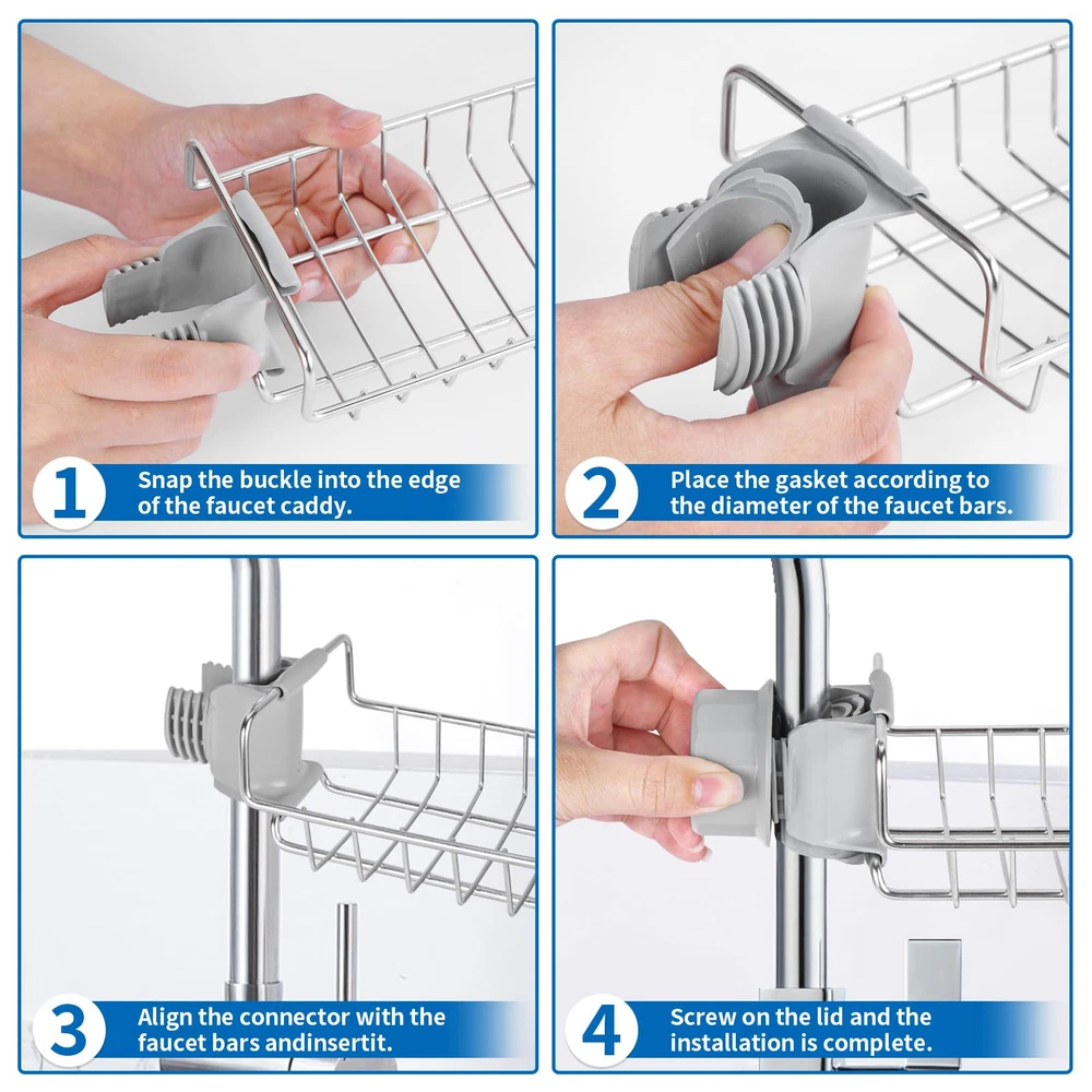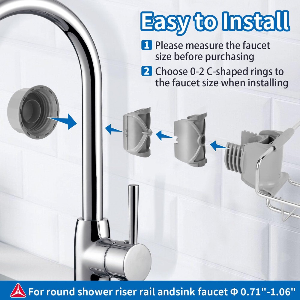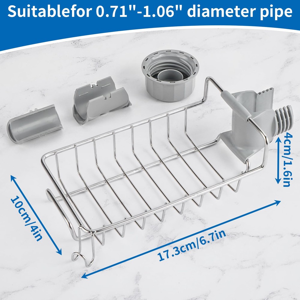 【Easy to install】 Suitable for most shower bars ranging from 0.71 to 1.06 inches in diameter(round faucets only). Needs no extra tool for installation that takes only less than five minutes. Comes with an Instruction Manual. 【Most durable material】Made of SUS304 stainless steel with the best anti-rust capacity in humid environments, improving the corrosion resistance of the shower rack and ensuring its long service life. 【Space saving】Makes full use of your space to keep the sink area clean and tidy and allows you to readily reach sponges, scrubbers and the like. 【Drainage Design】The cleverly designed strip-shaped hole at the bottom of the rack ensure that your sponges, scrubbers, and brushes remain dry and free from unpleasant odors. 【What is included?】One faucet rack,one connectors and one Instruction Manual. We provide you with a 100% REPLACEMENT or REFUND warranty if you are unsatisfied with the product you have purchased for any reason.