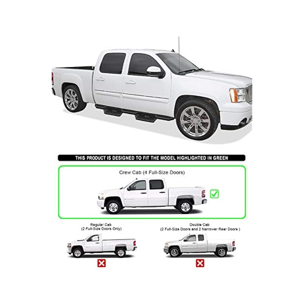 Stainless Steel Truck Steps, Rocker Panel Guards for Crew Cab 01,07 Chevy/GMC Description Product Description Enhance the look and functionality of your Chevy Silverado or GMC Sierra Crew Cab (2001-2007) with these durable Stainless Steel Nerf Bars. These 6.5-inch Pocket Steps offer a reliable step for passengers and protect your vehicle's rocker panels from damage. Constructed from robust square tube stainless steel, these rocker guards offer lasting strength and a sleek, professional appearance. Product Features 6.5-inch Pocket Steps Protects rocker panels from damage Constructed from robust square tube stainless steel Offers a reliable step for passengers Sleek, professional appearance Family-friendly design Built to withstand everyday use and off-road excursions Technical Specifications Vehicle Compatibility: Chevy Silverado & GMC Sierra Crew Cab (2001-2007) Material: Stainless Steel (Square Tube) Step Width: 6.5 inches Delivery We Do Not Ship Outside of the Continental US. Return Policy All items qualify for returns within 30 days of receipt. Buyer is responsible for return shipping on any item that is not damaged. Feedback We take our reputation seriously, we buy and sell online, so we understand the value of trust. If you are unsatisfied with your order, please contact us and we will work with you to resolve it to your satisfaction.