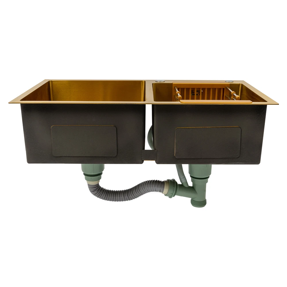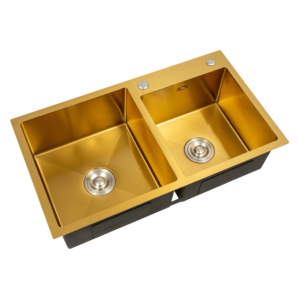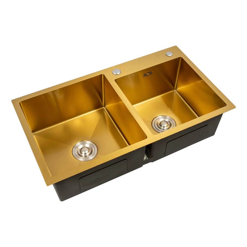 Gold Undermount Kitchen Sink, 80*45 cm Stainless Steel Kitchen Sink Double Bowls Description This 304 stainless steel sink is both stylish and functional. The gold color has a luxurious and shiny appearance, and it is made of high-quality stainless steel, which is sturdy and durable. 2 separate independent bowls with deep depth,a large capacity and a strong carrying capacity are enough to meet your daily washing needs. A good drainage system and a retractable draining basket provide you with a more convenient and cleaner kitchen environment. Key Features Build to Last: This sink is made of high-quality 304 stainless steel with a nano-coating process, which has good corrosion resistance , anti-abrasion and scratch resistance , and is sturdy and durable, ensuring a long service life. Stylish Appearance: This product is gold, giving people a sense of luxury and elegance. Its exquisite and stylish appearance, and smooth lines, make it suitable for most home styles, adding a special color to the kitchen. Large Capacity : Two large (left:15.75*16.54 inches, right: 11.81*12.99 inches) and deep (8.66 inches) sinks allow you to multitask and clean vegetables, fruits, plates, and cookware at one time without splashing, saving time. Strong Load-bearing Capacity: Thanks to its high-quality material, solid rectangular structure, and 3mm thickened panel, it has a weight-bearing capacity of about 198.42 lbs , making it confident for you to handle dishes on it. Good Drainage System: The X-shaped water guiding line and a large-diameter drain can guide water flow and form vortices to achieve rapid drainage without accumulating at the bottom. The special V and F shaped drain pipe drains faster and the standing water in it forms a natural barrier against insects and odors, providing you with a clean kitchen environment. Thoughtful Design: It has environmentally friendly rubber sound-deadening mats, which can effectively reduce the sound of running water. In addition, the product has an anti-condensation coating, which can effectively prevent condensation in winter and avoid moisture and water accumulation in the cabinet. Easy to Clean: With its simple structure and smooth surface, it is easy for you to clean it with a soft cloth(not included). Easy to Assemble : The complete range of mounting parts and the simple construction of the product allow you to install it quickly and accurately in a short time. Quality Service: We are honored that you have chosen our product. We have sufficient confidence in the quality of the product so that you can buy it confidently. But if you have any questions, you can contact our customer service, he will patiently answer and solve your problems. Details R-corner: Smooth R-corner not only enlarges the space, but also increases the beauty of the product, and it improves the safety of use. It also eliminates the dead corner of dirt accumulation for easy cleaning. Anti-overflow Outlet: The product has multiple holes for overflow, which drains water quickly and prevents water from overflowing out due to forgetting to turn off the faucet. Retractable Draining Basket: It can be used to drain fruits, vegetables, washed bowls and plates, etc. Application This product can be used to clean tableware, vegetables, fruits, and so on. It is widely used in kitchens, bathrooms, restaurants, school canteens, bars, dessert stores, coffee shops, hotels, garages, gardens, hotels, etc. Specifications Material: 304 Stainless Steel, Rubber Process: Nano-coating Color: Gold Style: Modern Shape: Rectangular Filtration Mode: Coarse Filter, Fine Filter Assembly Requirements: Yes Mount Type: Topmount, Undermount, Flushmount Stainless Steel Thickness: 3mm/0.12in Number of Bowls: 2 Overall Product Load-bearing Capacity: About 90kg/198.42 lbs Left Bowl Size: 40*42*22cm/ 15.75*16.54*8.66in Right Bowl Size: 30*33*22cm/11.81*12.99*8.66in Overall Product Size: 80*45*22cm/ 31.5*17.72*8.66in Pakage Size: 86*51*27cm/33.86*20.08*10.63in Gross Weight: 8kg/17.64lbs Net Weight: 7.5kg/16.53lbs Package Included 1* 304 Stainless Steel Sink 1* Drain Basket 1*Drain Pipe Notes Please check the size carefully before ordering. Please do not scratch its surface with sharp objects to obtain a longer service life. Please note that this package does not include the faucet. Please do not use strong acids or alkalis to clean items in the sink, and do not put hard objects or rusty metal in contact with the sink for a long time, keep the sink clean by cleaning the tank and drying it with a rag after each use. If you want to get a better installation result, we recommend that you hire a professional plumber to install it. Please allow the slight color difference caused by the shooting light and 1-3cm error due to manual measurement, and make sure you do not mind before you order. Brand Unbranded Type Double Sink Item Height / Item Length / Item Width / Room Kitchen Mounting Undermount Material Stainless Steel Bowl Height 22cm Color Gold Bowl Shape Rectangular Style Modern Number of Faucet Holes 2 Holes Shape Rectangular Assembly Required Yes