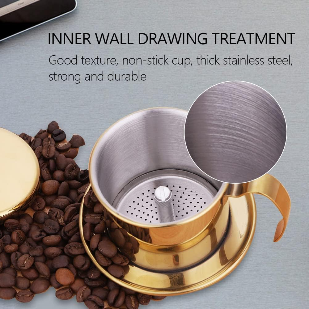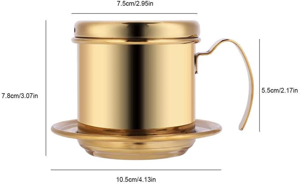 This stainless steel coffee filter is a game-changer! Beautiful gold finish, super sturdy, and brews rich, smooth Vietnamese coffee effortlessly. Perfect for home, travel, or office—super portable and easy to clean. Love the compact size yet solid build. Worth every penny for coffee lovers who enjoy authentic drip brew anytime, anywhere. Super happy with this purchase!