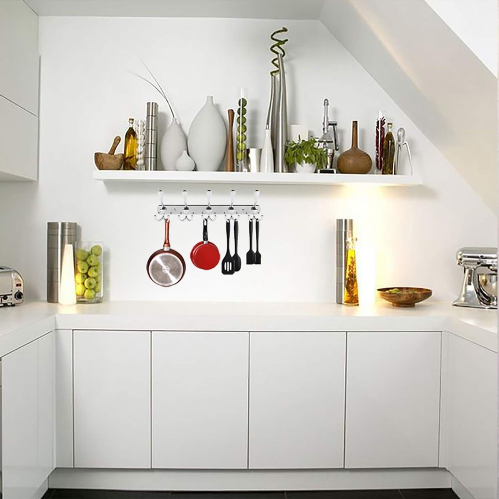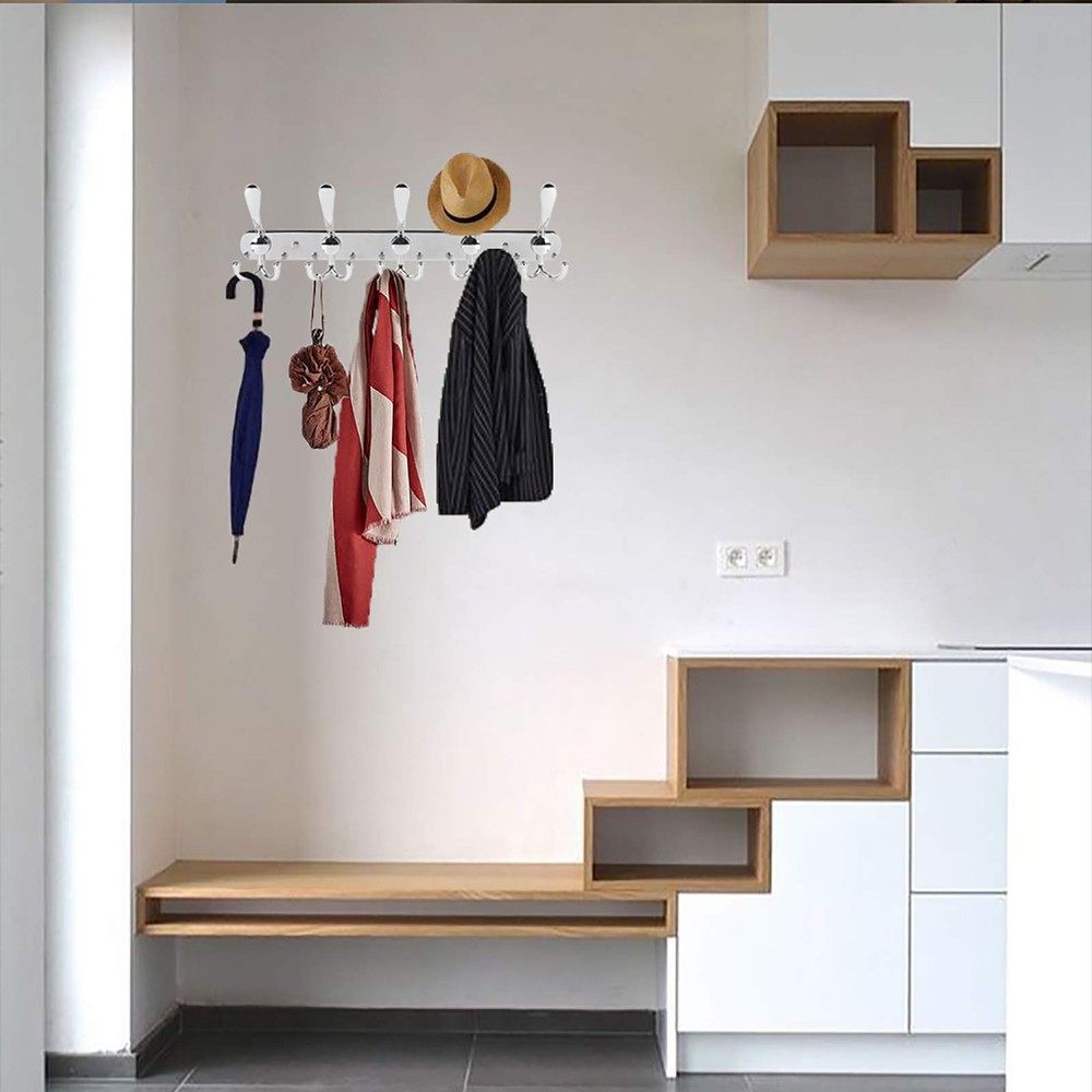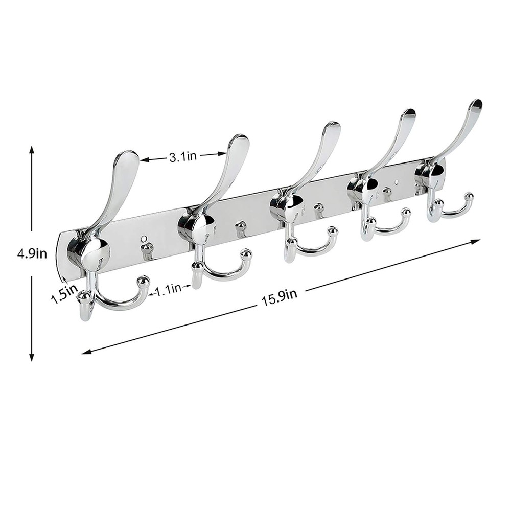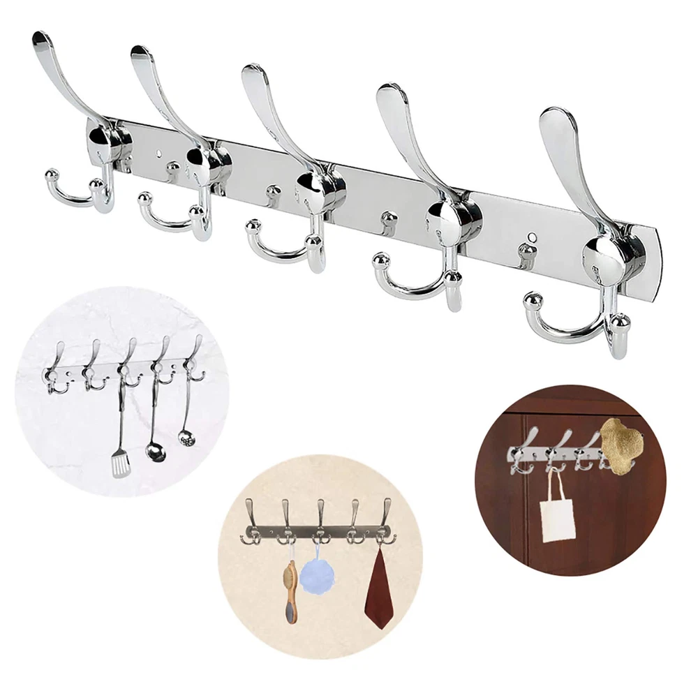 Stainless Steel Wall Mounted Coat Rack with 5 Tri Hooks Heavy Duty Metal Entryway Organizer