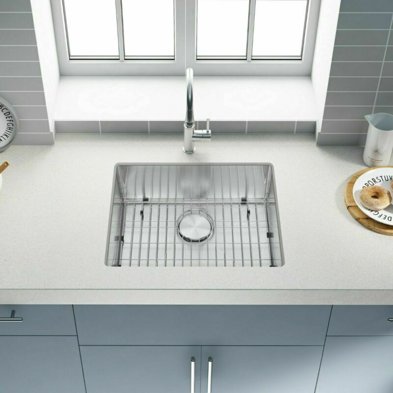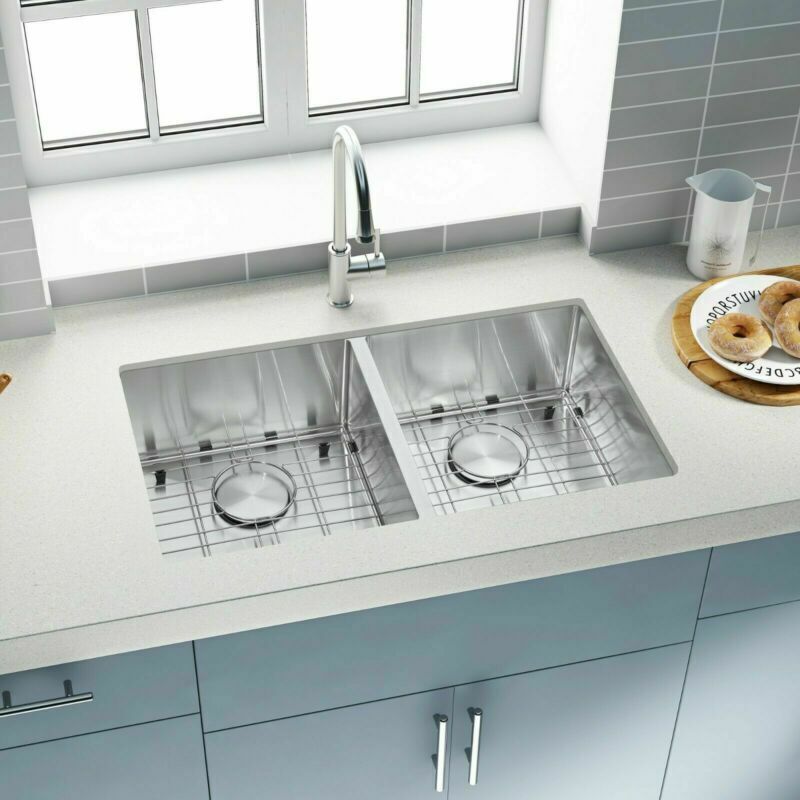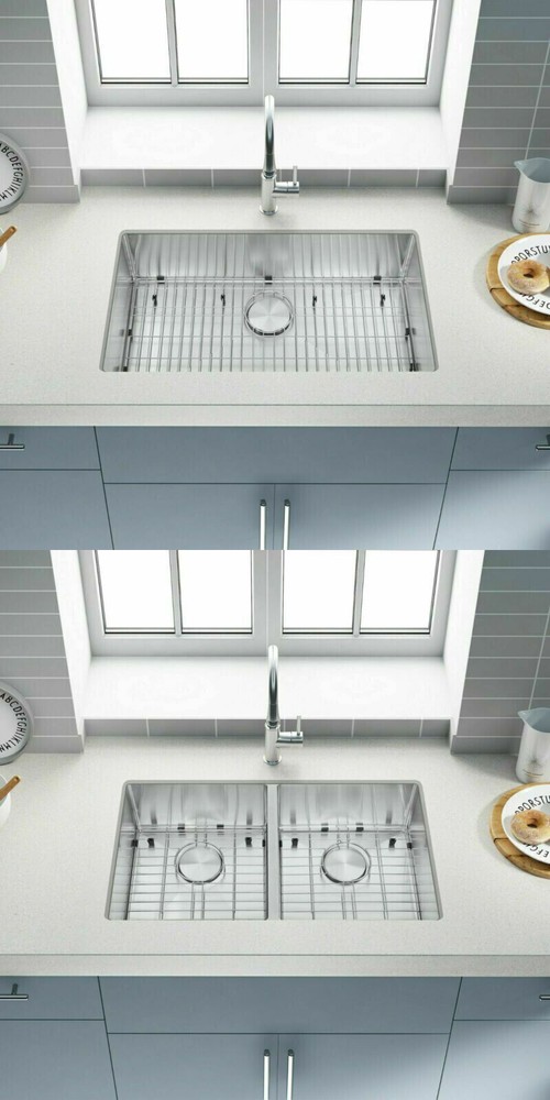 SHIP FROM USA WAREHOUSE!!! Premium 304 grade stainless steel with excellent corrosion and rust-resistant 18 Gauge stainless steel thickness 10mm radius corner for easy cleaning and modern look Commercial grade brushed finish for easy to clean and long-lasting Heavy duty sound guard undercoating and thick rubber padding to minimize noise and reduce condensation Slanted bottom with elegant drain grooves for easy water draining USA standard 3.5'' drain opening will fit any garbage disposal unit Drain placement – Rear drain placement ensures dishes don't settle on the drain Stainless steel bottom rinse grid can protect the sink from scratches and acts as a drying rack for pots and pans Stainless steel basket strainer drain that traps goods waste and can be easily emptied into the trash Stainless steel decorative drain cover that adds to the visual beauty .It covers the drain while allowing water and waste to flow through under it . Accessories Strainer and decorative drain cover Bottom rinse grid Cut-out template paper Installation mounting brackets hardware Package Package: Foam corner guard+7 layers stronger carton