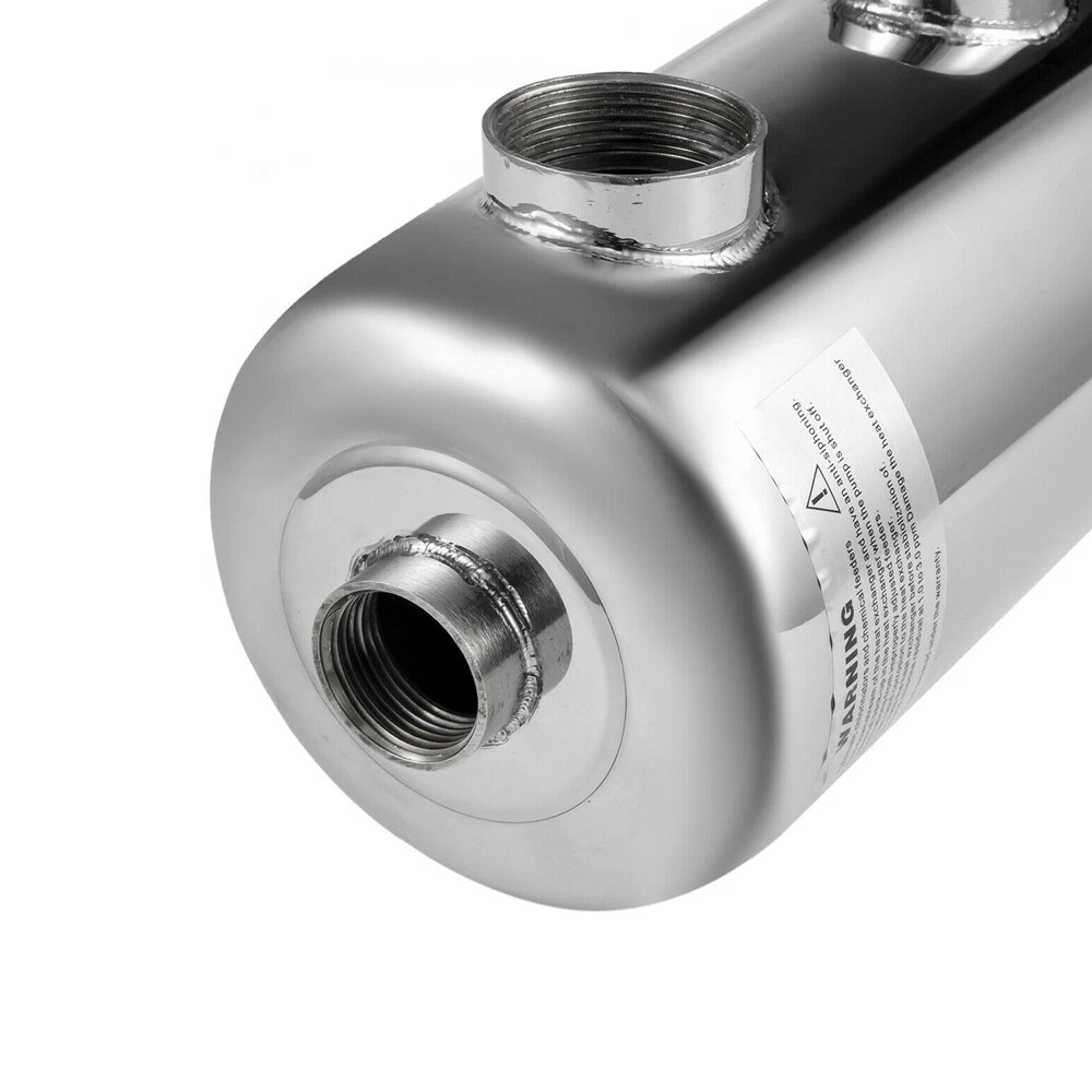 Swimming Pool Equip Stainless Steel Water Heating System Tube Heater Exchanger Description: The pool heat exchanger is made of 304 stainless steel that has good rust and salty water resistance, so it is more durable and has a long service life. The pool heat exchanger is based on the 60°C (140°F) temperature difference between the incoming water and the hot water, delivering 135 kBtu of heat in one hour, so it is of high efficiency. The pool heat exchanger uses an innovative spiral-wound design to ensure a constant temperature. It is very suitable for pools, spas, hot tubs, solar energy, hydraulic heating, oil cooling, heat recovery, snow melting, etc. What's Included: 1* Stainless Steel Heat Exchanger 2* Fixed Brackets Features&Highlights: High Durability: The pool heat exch ❤❤❤Welcome to royalfeatured, have a good day ❤❤❤ Swimming Pool Equip Stainless Steel Water Heating System Tube Heater Exchanger Description: The pool heat exchanger is made of 304 stainless steel that has good rust and salty water resistance, so it is more durable and has a long service life. The pool heat exchanger is based on the 60°C (140°F) temperature difference between the incoming water and the hot water, delivering 135 kBtu of heat in one hour, so it is of high efficiency. The pool heat exchanger uses an innovative spiral-wound design to ensure a constant temperature. It is very suitable for pools, spas, hot tubs, solar energy, hydraulic heating, oil cooling, heat recovery, snow melting, etc. What's Included: 1* Stainless Steel Heat Exchanger 2* Fixed Brackets Features&Highlights: High Durability: The pool heat exchanger is made of 304 stainless steel that has good rust and salty water resistance, so it is more durable and very suitable for chlorine or salt water swimming pools and spas. High Efficiency: The pool heat exchanger is based on the 60°C (140°F) temperature difference between the incoming water and the hot water, delivers 135 kBtu of heat in one hour, so it is of high efficiency. Innovative Design: The pool heat exchanger uses an innovative spiral-wound design to ensure a constant temperature. High Compatibility: It transfers heat indirectly between any hot water circuit, steam circuit, and any pool or spa facility. Rapid Heating: With an output of 135 KBtu per hour, this pool heat exchanger ensures the pool gets hot quickly without waiting, saving your time and energy. Healthy and Hygienic : This heat exchanger is a non-storage type, where the hot and cold fluids have separate channels and do not mix with each other. This design ensures that the water source is clean and free of contamination Easy to Clean: Because of its smooth surface and few crevices, it can be easily cleaned with a damp cloth without much effort and time. Excellent After-Sales Service: We aim to provide quality products and services, if you have any problems, please feel free to contact us. We will reply and solve the problem for you as soon as possible. Weights&Dimensions Side of Hot Water Pipe: 2.54cm/1in FPT Same Side Port: 3.81cm/1.5in FPT Product Size: 33*14cm/13*5.5in Packing Size: 40*19*19cm/15.75*7.48*7.48in Weight: 3.4kg/7.5lbs Specifications : Material: 304 Stainless Steel Output: 135 KBtu/Hour Heat Transfer Area: 3.2ft² Hot Water Flow Rate: 25 L/min Cold Water Flow: 200 L/min Details Spiral Wound Design: The spiral wound design of the pool heat exchanger effectively ensures the constant temperature when working. Food-grade Material: The pool heat exchanger is made of 304 food-grade stainless steel that is healthy to use. Application It is very suitable for pools, spas, hot tubs, solar energy, hydraulic heating, oil cooling, heat recovery, snow melting, etc. Notes 1. 1 1/2" FPT is used for one side of the pool water and 1" FPT is used for hot water. 2. Please allow the slight color difference caused by the shooting light and 1-3cm error due to manual measurement, and make sure you do not mind before ordering. Payment Delivery details Terms of sales About us Contact us Payment We accept ebay payment 。 Fees such as import duties, taxes are not included in the item price or shipping costs. These charges are the buyer's responsibility. Delivery details Shipping: 2-9 working days to: USA Terms of sales We maintain high standards of excellence and strive for hundred percent customer satisfaction. Feedback is very important to us. We hope that you contact us immediately before you give neutral or negative feedback, so that we can address your concerns. It is impossible to address issues if we do not know about them! About us Your satis faction is our ultimate goal. We work hard to earn your trust and future business. Our certified technicians have tested each item before shipping. The unit comes with 1 year limited warranty on all manufacturing defects. a) If you receive a defective item, you may return it or ask for a discount. Please contact us within 14 days after you receive the package. b) What you returned must be intact and in its original packaging as re? u. Customer is responsible for shipping costs of the returned item. c) We will cover the cost of shipping back t with the shipping rate indicated in the registration page. We will send you a new unit or refund the full payment you paid. Thank you. Contact us Business Hour Business Hour: Monday To Friday: 8:30 AM to 5:00 PM (Beijing China time) Due to time zones, our reply to your questions may not be immediately. But within above working time, we will reply your email within 24 hours. If it's non-workdays, please kindly be patient and wait till Monday. Please contact us with ebay message. Please feel free to contact us if you have any questions. Monday To Friday: 8:30 AM to 5:00 PM (Beijing China time) Due to time zones, our reply to your questions may not be immediately. But within above working time, we will reply your email within 24 hours. If it's non-workdays, please kindly be patient and wait till Monday. Please contact us with ebay mess