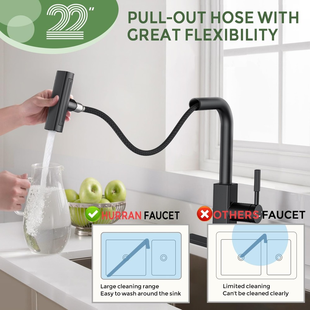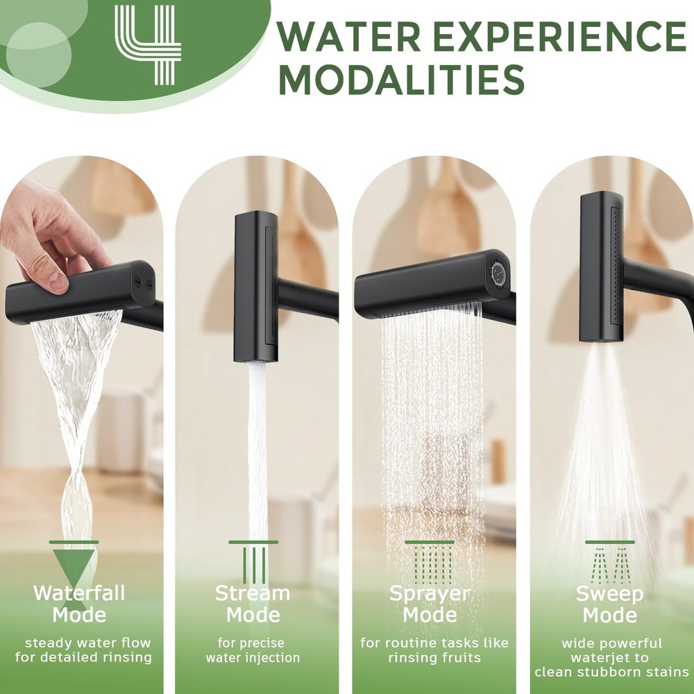 kitchen sink faucet with sprayer waterfall kitchen sink kitchen faucets with pull down sprayer llaves para fregaderos de cocina rv faucets kitchen grifos para fregaderos de cocina matte black kitchen faucet black faucet kitchen pull down kitchen faucet kitchen faucets with sprayer lavaplatos de cocina modernos llave de fregadero de cocina brushed nickel kitchen faucet llave para fregadero de cocina kitchen faucet black waterfall sink faucets smart sink utility sink faucet with sprayer sink faucet head futuristic sinks for kitchen waterfall faucet water faucet single hole kitchen faucet stainless steel kitchen faucet kitchen faucets black black sink faucet kitchen grifo de cocina sink faucet extender black kitchen faucet with pull down sprayer touch kitchen faucet stainless kitchen faucets sink dishwasher combo futuristic sink pulldown kitchen faucets waterfall kitchen faucet faucet kitchen 3 hole kitchen faucet commercial faucet with sprayer fregadero pull-down sprayer kitchen faucets black kitchen sink faucet smart kitchen sink outdoor kitchen faucet faucets for kitchen sinks with sprayer kitchen sink faucet black black sink faucet kitchen sink with faucet combo modern kitchen faucet faucets for sink touch on kitchen sink faucets smart sink kitchen modern kitchen sink kitchen sink and faucet combo set griferia de cocina pull down faucet pull out kitchen faucet kitchen sink with faucet farmhouse kitchen faucet kitchen water faucet sink faucets grifería lavaplatos faucet extender for kitchen sink kitchen sink 304 clearance kitchen faucets black stainless steel kitchen faucet black kitchen faucets touch kitchen faucets with pull down sprayer pulldown kitchen faucet 304 stainless steel kitchen sink sink attachment for faucet sink faucet kitchen waterfall sink kitchen lavabos de cocina faucet for sink faucet adapter kitchen sink black matte kitchen faucet faucets for kitchen kitchen sinks with faucets combo kitchen tap faucet sink llave de agua para cocina facet 4 In 1 Function Modes: kitchen faucets have been upgraded with four water dispensing function modes: Stream, Waterfall, Sprayer and Sweep. Stream for precise water injection; Waterfall provides a steady water flow for detailed rinsing; Sweep creates a wide, powerful waterjet to clean stubborn stains. Sprayer for routine tasks like rinsing fruits; Bring you a new and versatile kitchen experience 360° Rotatable and Pull-out Design: The upgraded 22-inch pull-out hose expands the range of use for everyday cleaning with great flexibility. The 360° rotatable faucet easily switches between four modes with a quick turn of the nozzle, making your life full of convenience Premium Quality Material: kitchen faucet with pull-down sprayer is made of SUS 304 stainless steel, which is corrosion and rust-resistant and durable. The upgraded ceramic valve core passes tens of thousands of cycle tests to ensure tight switching and prevent water leakage Convenient One-handed Operation: The faucet is designed with a single handle for the convenience of the customer's daily use. Users can easily control the water temperature and flow using only one hand, while the other hand can handle other things, making kitchen activities smoother and less time-consuming Peace of Mind and Reliability: Provides with all the accessories needed for installation, do-it-yourself installation takes only a few minutes, and does not require a plumber or specialized tools