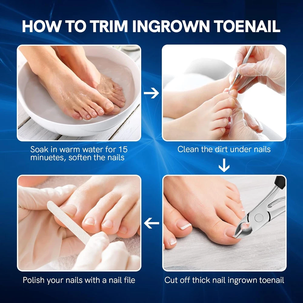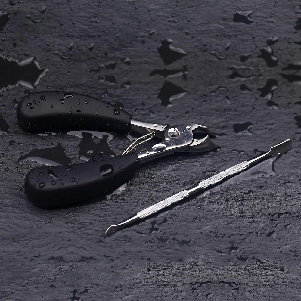 SPECIFICATIONS: 4Cr13 Stainless Steel Blade + ABS handle. PROFESSIONAL TOENAIL CLIPPERS: This toenail clippers developed by professional podiatrists, using german cutting technology to keep your nails' health, It combined with the carefully designed curved blade, which gives you an amazing nail cutting experience. SHARPNESS INGROWN TOENAIL CLIPPERS: This ingrown nail cutter has a wide jaw, Which can be opened to 1.18 inches, it can effectively remove the ingrown nails when used, and it will not make you feel pain, and it is effective to help you remove the bad Nails, improve the growth environment of toenails. UPGRADED HANDLE: This professional pedicure tool's handle is made of professional non-slip ABS. When you use it to build your nails, you will find that it is more portable, easy to control and safe, which allows you to go deep into the bad toenail to the greatest extent, Comfortable, firm grip & easy cutting. HEAVY DUTY PEDICURE NIPPER: The high-quality product maintains sharpness and strength over time, allowing for perfect nail trimming with each use, 4Cr13 stainless steel, Washable and rust-free, sturdy and durable. TRUSTED FOOT CARE KIT: Don't forget we offered another cuticle pusher tool in addation, Which gives you a full satisfaction pedicure experience of all time. Package Contains: 1 * Toenail Clipper; 1 * Cuticle Pusher. Perfect present choice to yourself, and relatives on occasions such as Christmas, birthdays, Thanksgiving, Easter, Mother's Day, and Father's Day. Product Description Upgrade Toe Nail Clipper Trimmer W/Cuticle Pusher Crisp clips - Very easy to use Wider cutter opening compared to regular nails clippers makes use on thick toe nails much easier and less painful. Thicker handles gives better grip for those thick toe nails. Multifunctional Large Nail Clipper for Seniors Dual-ended cuticle pusher More suitable for solving various toenail problems