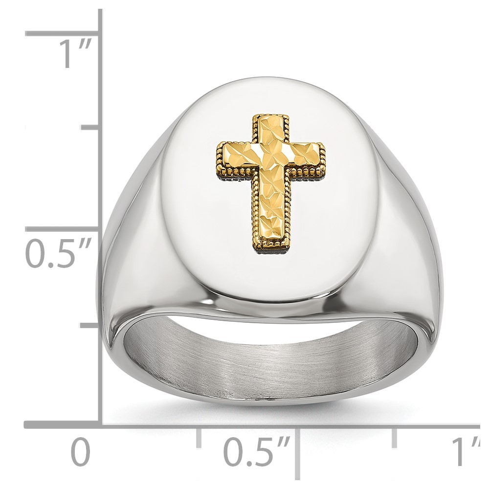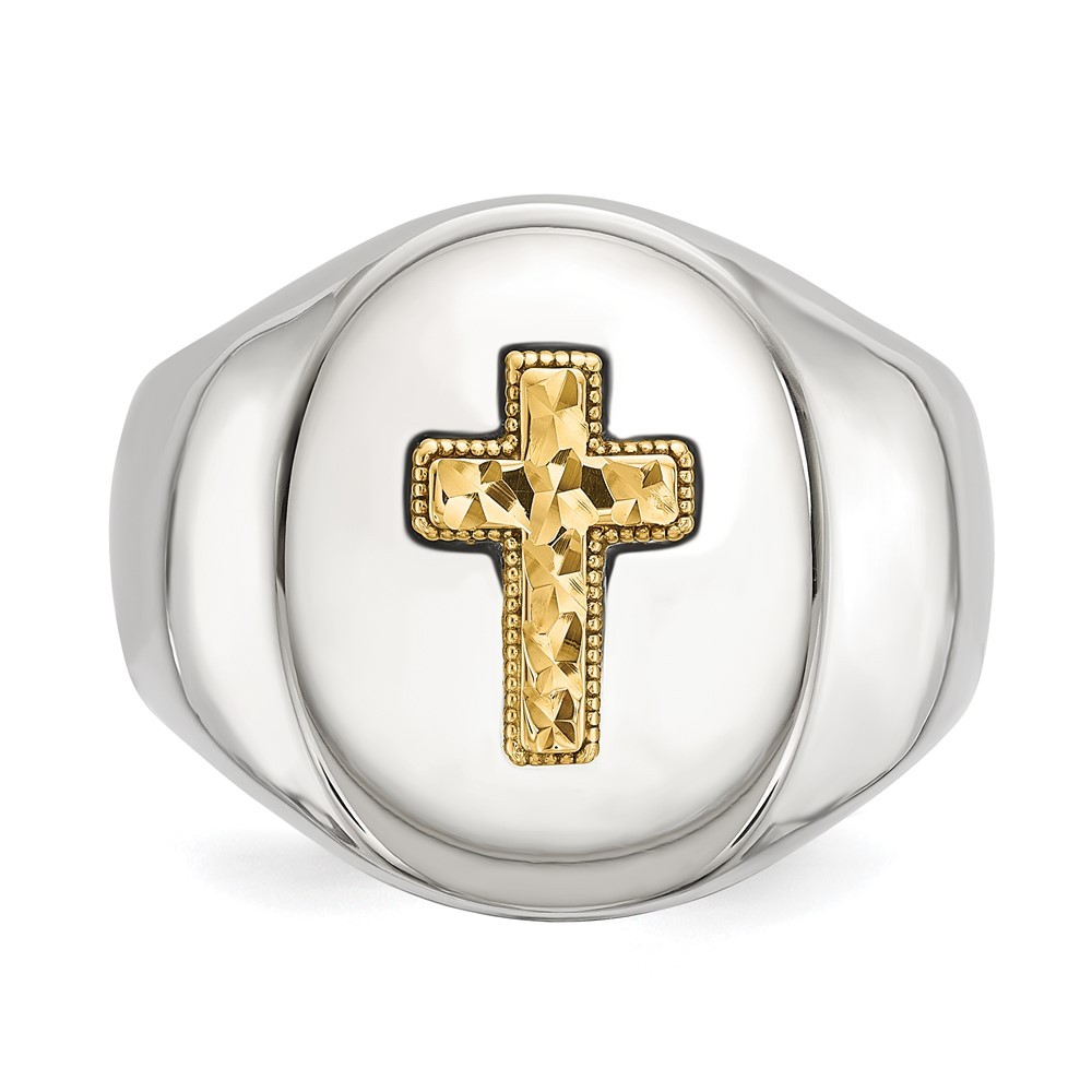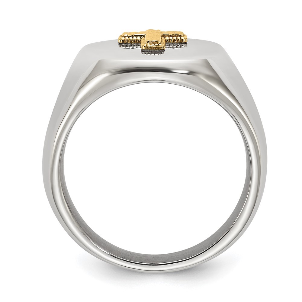 Finish:Polished|Material: Accents:14K Gold|Material: Accent Color 1:Gold|Band Width:9 mm|Head Height:4.5 mm|Material: Primary:Stainless Steel|Ring Fit:Standard|Sizeable:No|Thickness:2 mm|Item Weight U/M:gm|Width of Item:9 mm|Packaging:Gift Pouch|Product Type:Jewelry|Jewelry Type:Rings|Sold By Unit:Each|Gender:Men's|Material: Primary - Color:White|Ring Type:Signet Ring|Ring Top Length:18.7 mm|Ring Top Width:15 mm All weights and measurements are approximate and may vary slightly from the listed information. Welcome to diamond_6720 Payments We accept all Ebay approved payment. Please sent the payment to us within 8 days after the auction has ended, or you will have unpaid case auto open by eBay. Shipping Policy We will ship all items within 1 business days of purchase during the work week (M-F) excluding holidays. If you order on Friday, your order will be shipped the following business day. Tracking will be provided when it becomes available. We will only ship to a PayPal Verified Address. Please make sure your address is current and correct. If the information does not match, your order may be canceled. Buyers are responsible for all customs, duties and taxes for your respective countries. Delivery times for International Shipping will vary. California Buyers Pay 9.0% Tax on all orders. case auto open by eBay. Return Policy & Exchange Returns or Exchange are accepted. Buyer must contact us within 30 days after the item is received. Item must be returned in unworn and resalable condition. We will only issue a refund for the purchase price, excluding any shipping fees. If we are at fault, we will provide a full refund. Buyer is responsible for all return shipping costs. BUYERS FEEDBACK If you have any concerns regarding your purchase, please contact us via eBay Message, we assure you that a satisfactory resolution will be reached. Your feedback is very important to us Do remember to give us 5 star rating(*****) if you are satisfied with our product & service .