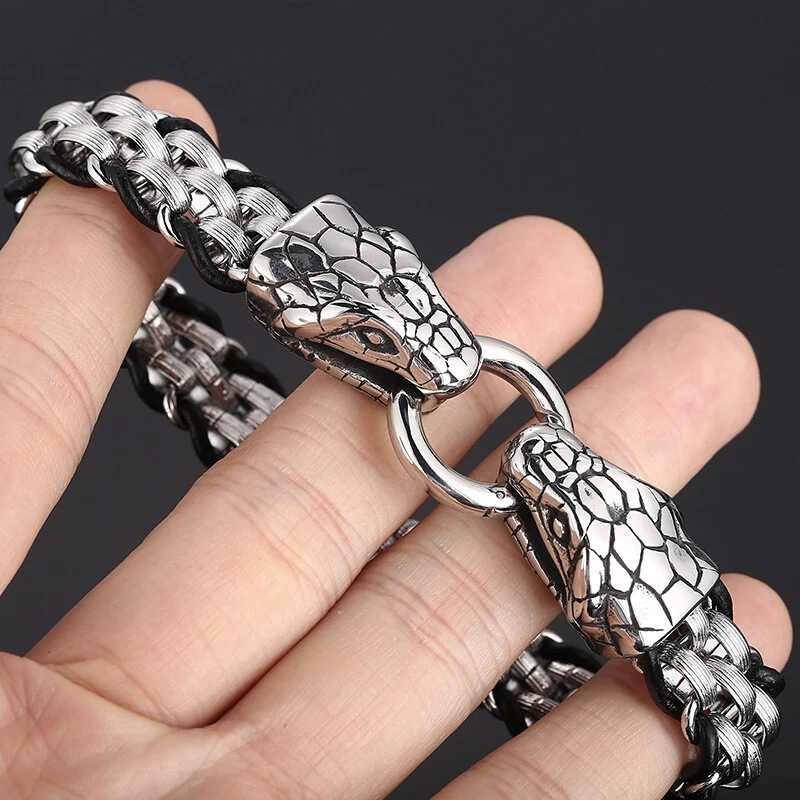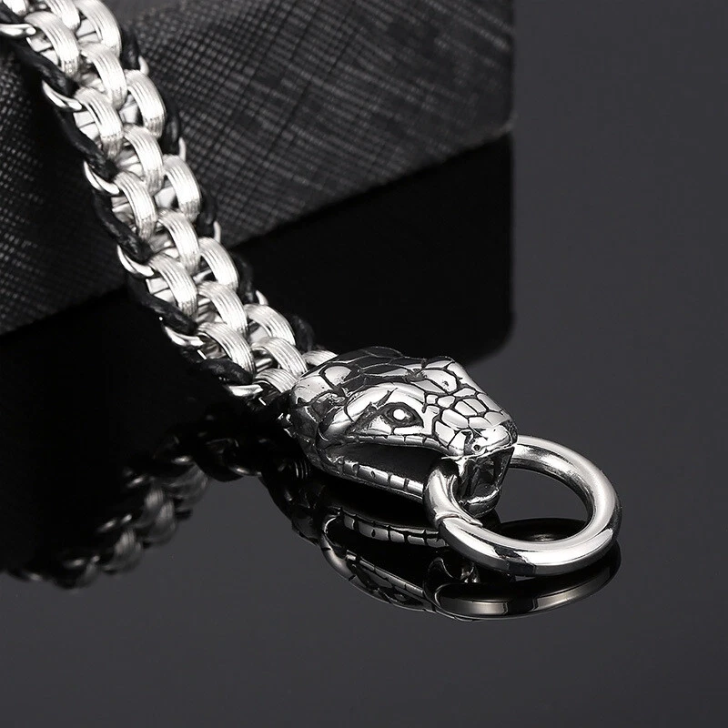 Stainless steel Lion Ophiocephalus skull buckle titanium steel bracelet