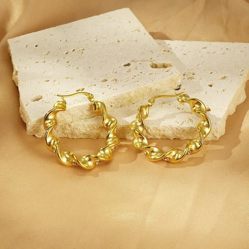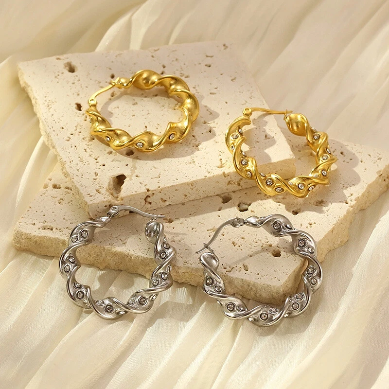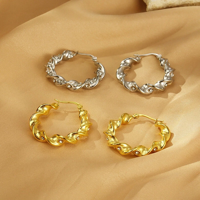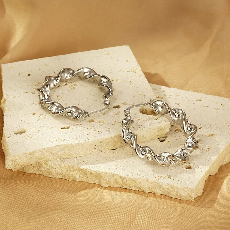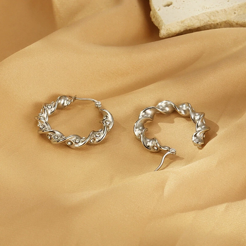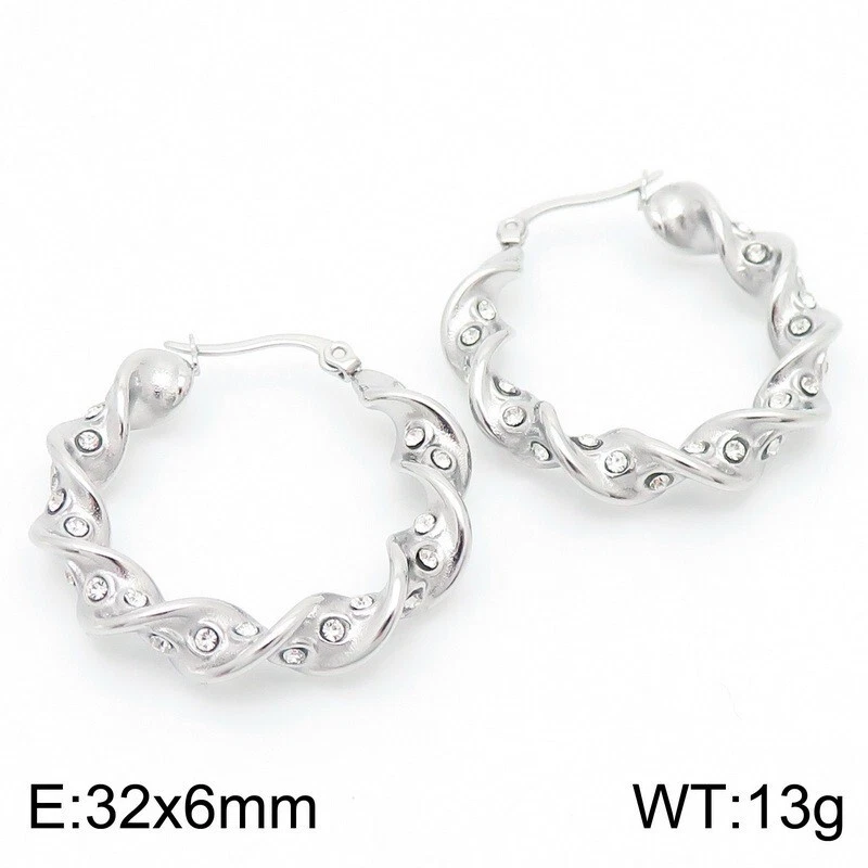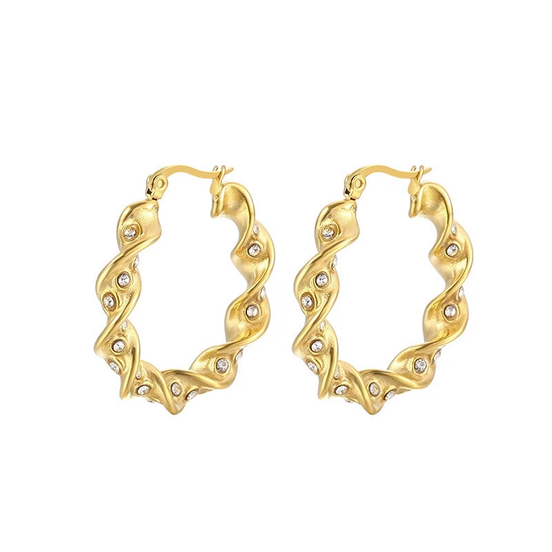 Stainless steel twist twist diamond set female round titanium steel ear