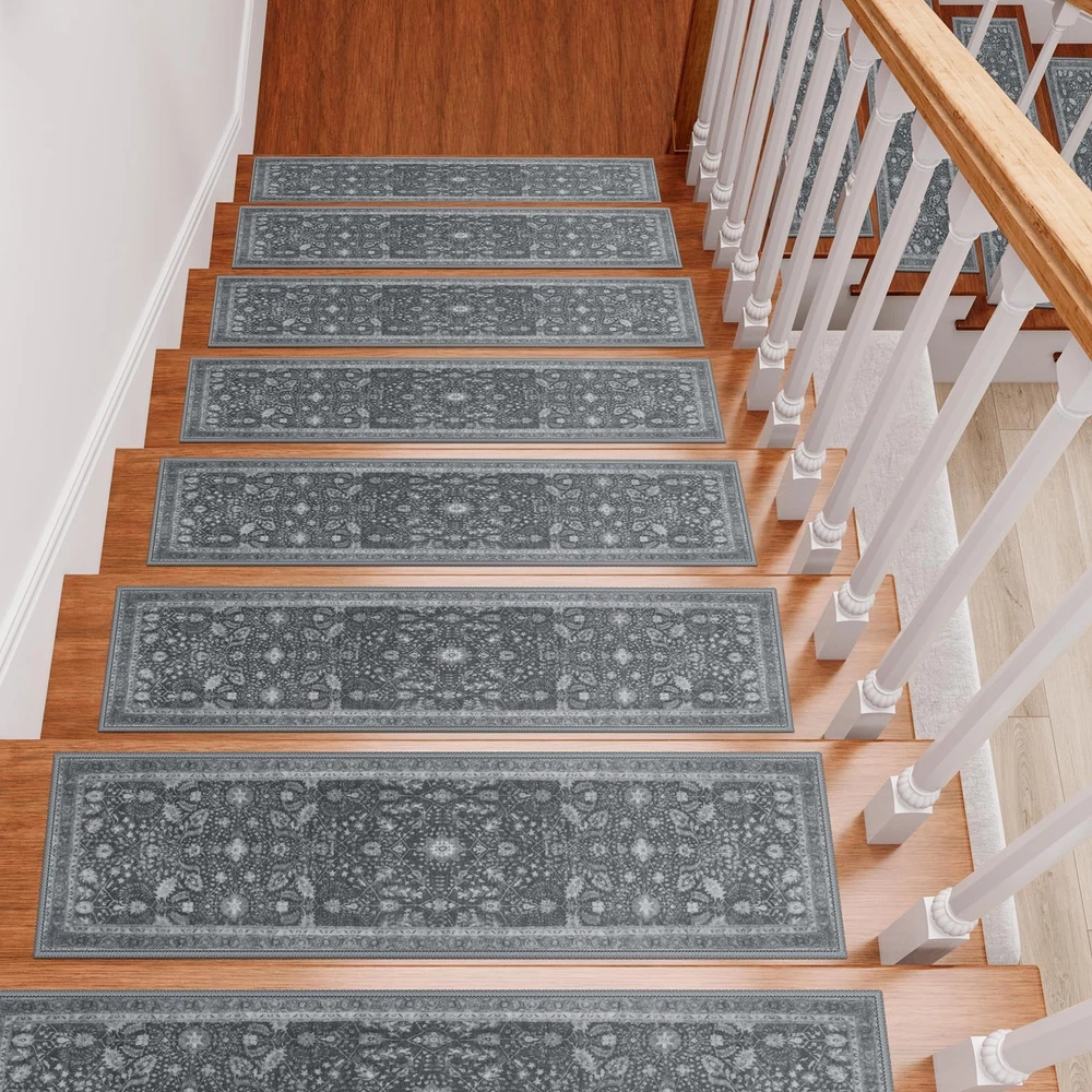 Stair Treads Non Slip 15PCS 8"x30" Stair Treads for Wooden Steps, Rubber Backing Stair Runner Washable Carpet Stairs Treads, Indoor Safety Stair Runners for Kids Elders Dogs Product Details Size: 8"x30" Color: Grey Number of Items: 15 Brand: Tiveney MPN: ZY-HHboho-Grey-15 UPC: Does not apply EAN: Does not apply Material: Polyester (PET) Brand: Tiveney Item dimensions L x W x H: 30 x 8 x 0.3 inches Color: Grey Shape: Rectangular Item Thickness: 0.3 Inches Grade Rating: Residential Number of Items: 15 Item Weight: 10.5 pounds Product Dimensions: 30 x 8 x 0.3 inches Country of Origin: China Date First Available: June 10, 2024 Soft & Comfy: Our carpet treads for wood stairs are crafted from plush faux wool to create a soft, gentle surface that feels like walking on a cloud. With a 0.3" thickness, these stairs carpet non slip reduces noise by 80% and provides excellent cushioning for all your loved ones, ensuring a comfortable surface to walk on. Ultra Non-Slip Stair Treads indoor: The stair runners for wooden steps non slip with rubber backing can be firmly attached to the floor and stays in place, providing extra non-slip support and friction, allowing you to enjoy a more relaxed and safe experience up and down the stairs. Sturdy & stylish: Made with 100% low-pile faux wool and reinforced edges, our carpet runner for stairs can stand up to daily foot traffic and paw scratches. The abstract color patterns add a touch of modern style, enhance the aesthetics of any staircase. These indoor stair treads are the perfect choice for all. Easy Install & No Residue: Clean the floor, dry it, and place it. Without using any tape or permanent glue, this stair carpet strips leaves no residue after repositioning or removal, protecting your wooden floor. It can be used on various floors such as wood, tile, marble, metal and glass. Machine Washable: Maintain the carpet for stairs non slip 15 pack with ease by shaking or vacuuming, for a deep clean, toss them in the washing machine. The microfiber doesn't shed or fade after multiple washes and air drying, and the anti-slip property remains intact.