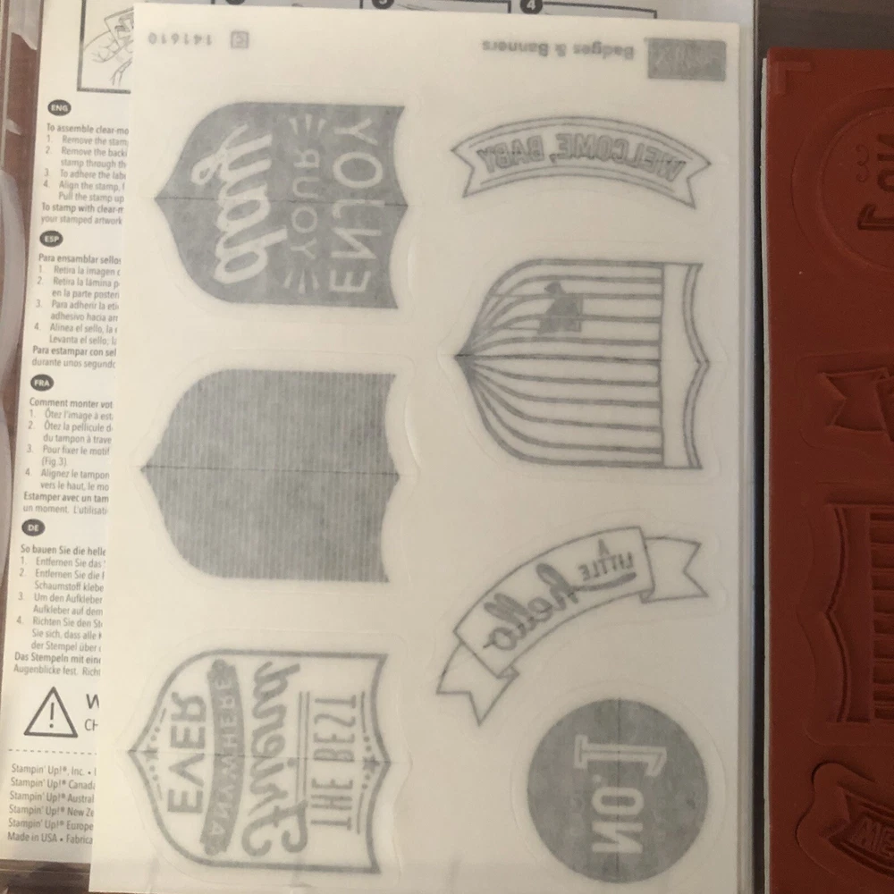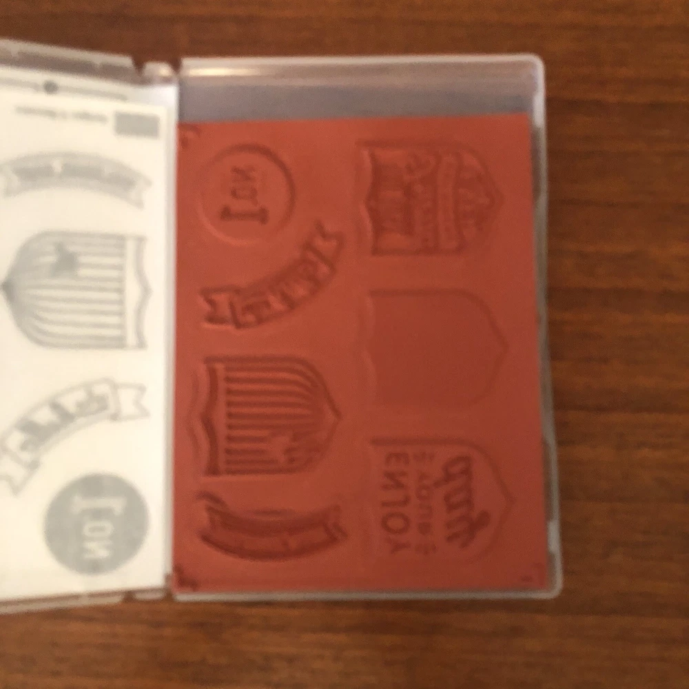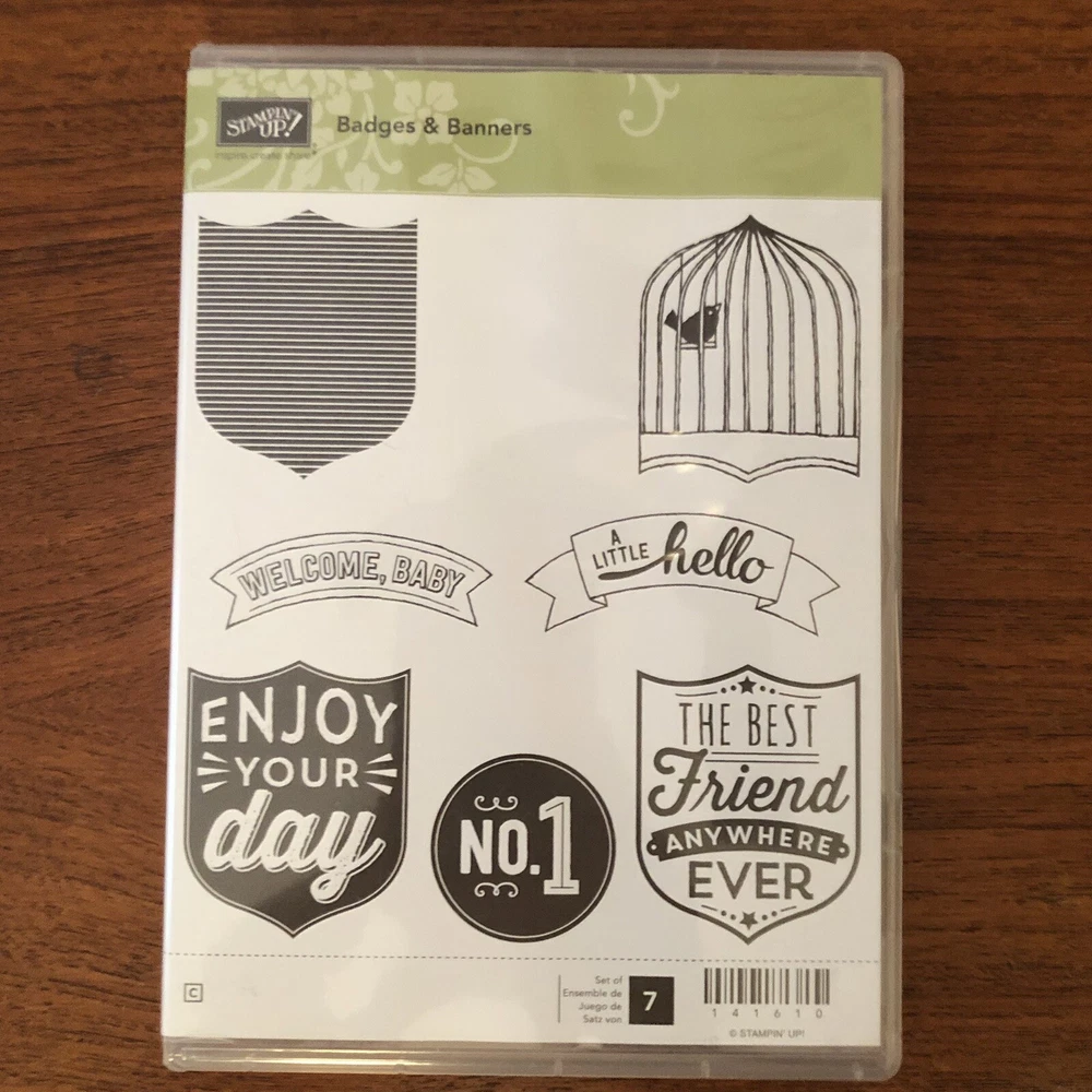 Included is the retired Badges & Banners stamp set by Stampin Up. This is a new cling mount stamp set. Badges & Banners is perfect for use with handmade cards, scrapbooking, and other paper crafts. Please check out my other listings for more stamping & cardmaking supplies! All of my supplies come from a smoke free home. I do combine shipping. Enjoy & Happy Crafting! - Catherine