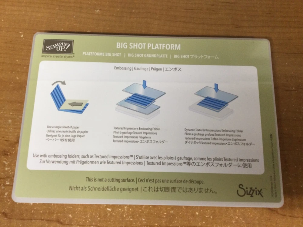 Stampin Up Big Shot Platform, Sizzix, embossing,used 6.25" by 9" by 1/4" I will combine shipping on multiple purchases. Please do not pay individual invoices. Message me when you’re done shopping and I will combine all purchases onto one invoice. Please take a look at my other auctions as I am listing lots of brand new scrapbooking supplies, scrapbooking kits, handmade titles & embellishments & card making supplies. I have five ebay sites: rosebud412, suzdejo59, suzy412, suzdejo-52, suzdej_0 All items come from a smoke and pet free environment. Thank you for your bid/purchase. To get the most out of the high shipping these days, pick another item you want or can use and chances are the shipping will not increase as I combine shipping. It always costs more to ship one item. I want you to have the best experience buying off ebay as possible. So if you find another item you want or need, make an offer for the asking price and I will accept and mail the items together. Also please let me know that you have more than one item. I would hate to miss it. Thank you for shopping in my 5 ebay sites.