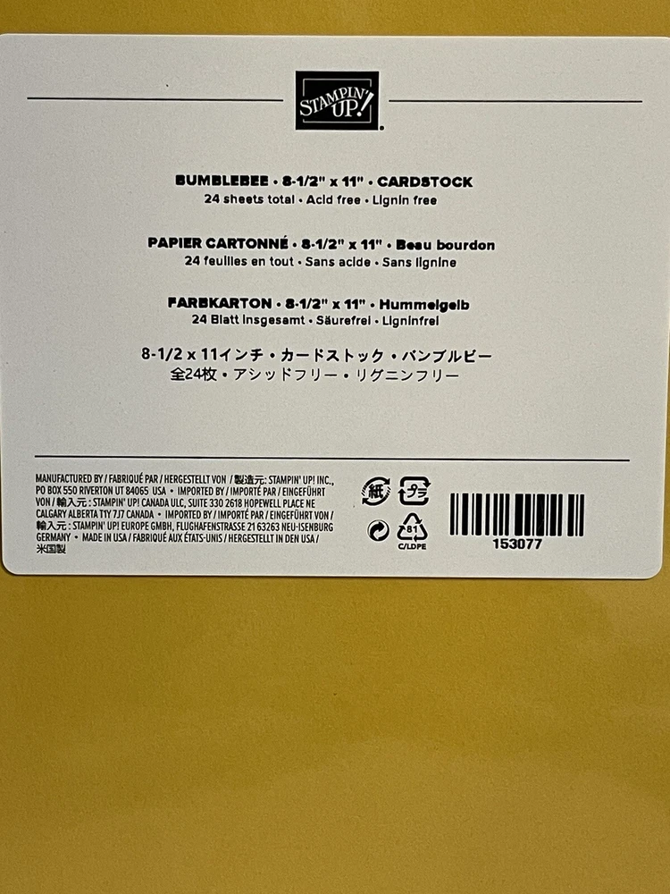 Size: 8 1/2” X 11” Model: Bumblebee Type: Card Stock Brand: Stampin' Up! Color: Yellow