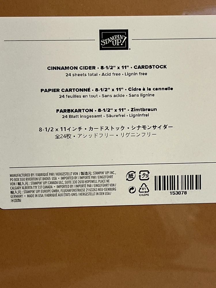 Stampin' Up! Card Stock 8 1/2” X 11”. Cinnamon Cider NIP Sealed Card Scrapbookin