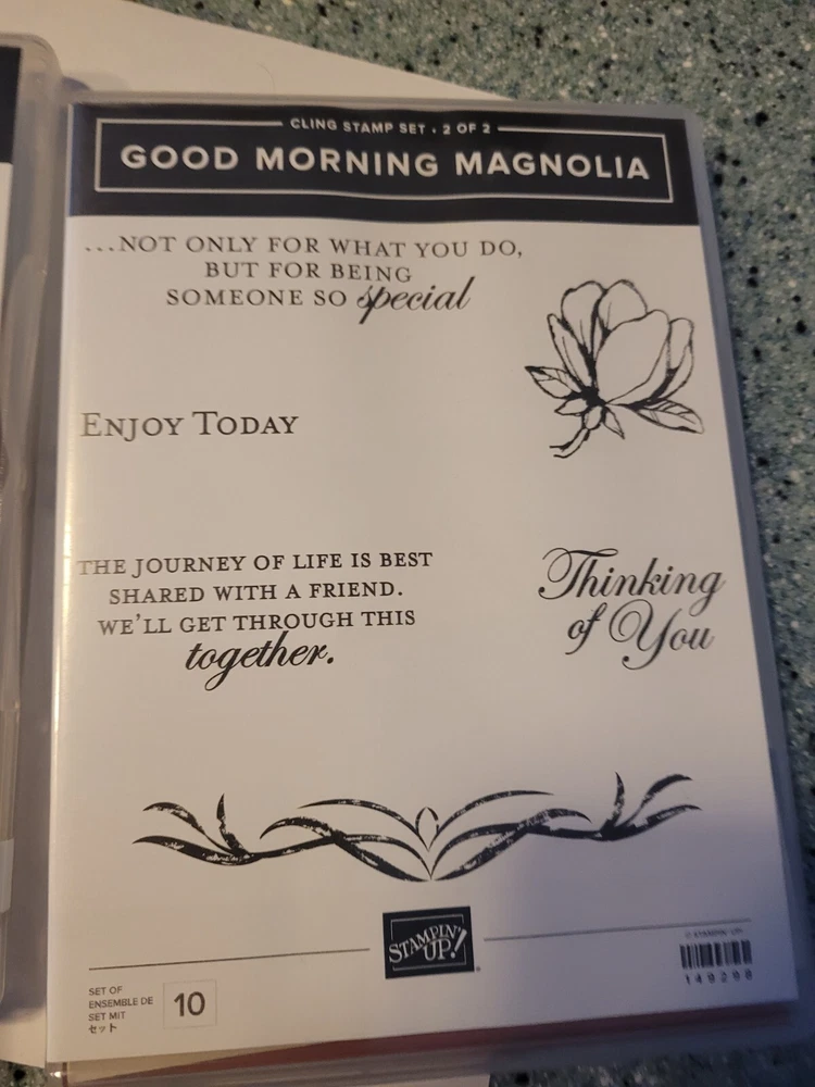 Stampin' Up! Retired Good Morning Magnolia 2 box set with Coordinating Dies of Magnolia Memory Dies 10 Stamps and 16 Dies Complete With Phrase of "Enjoy Today, Thinking of You" and many more Rubber