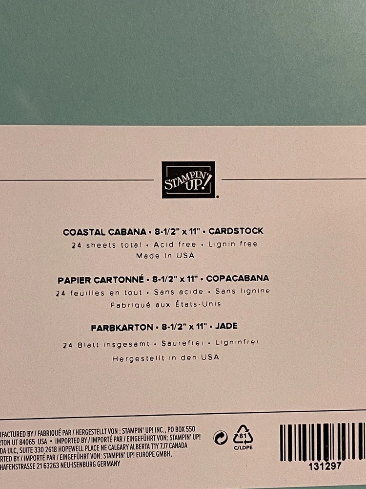 Stampin up Retired Cardstock "Coastal Cabana" 8 1/2" X 11" New